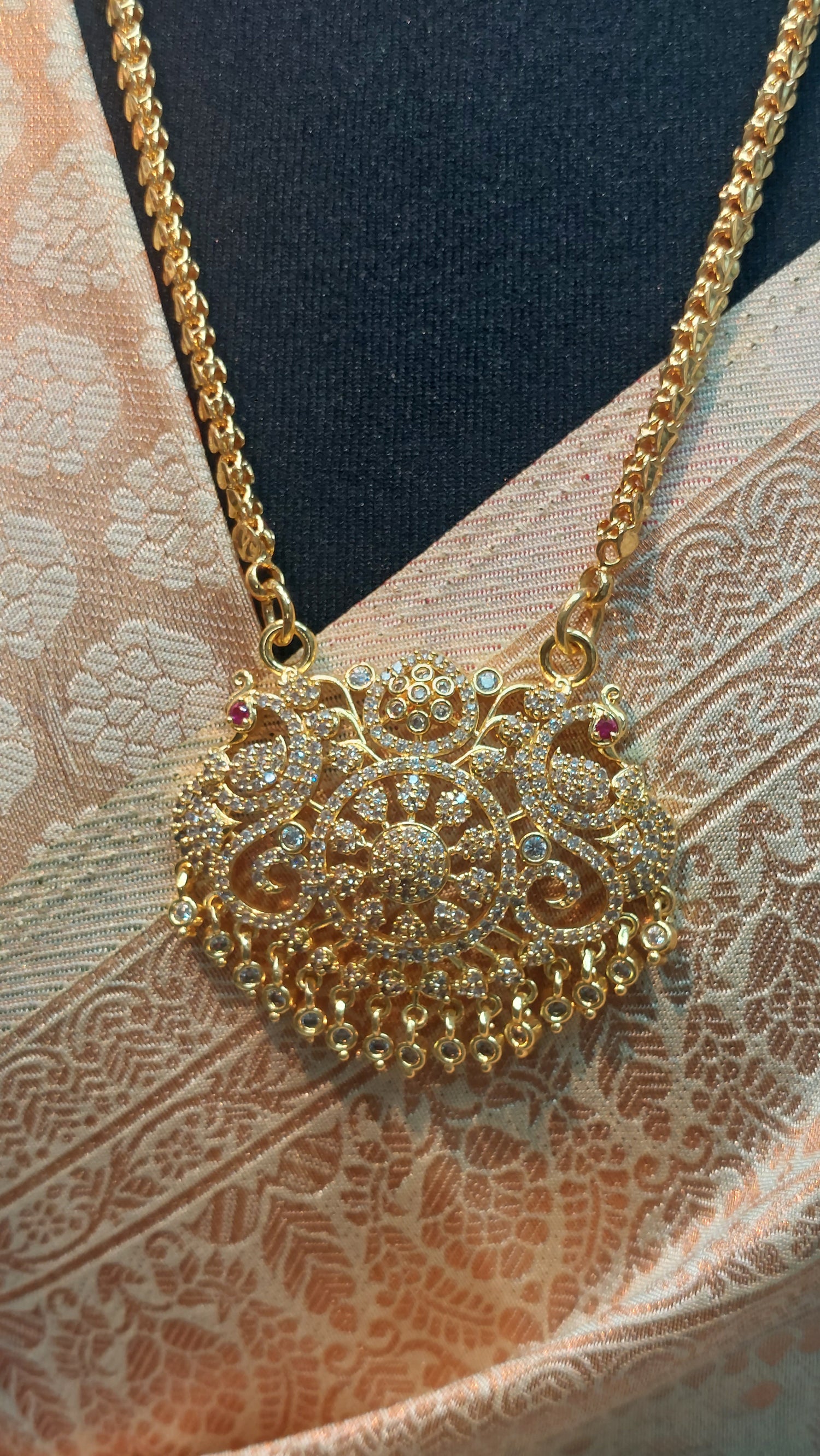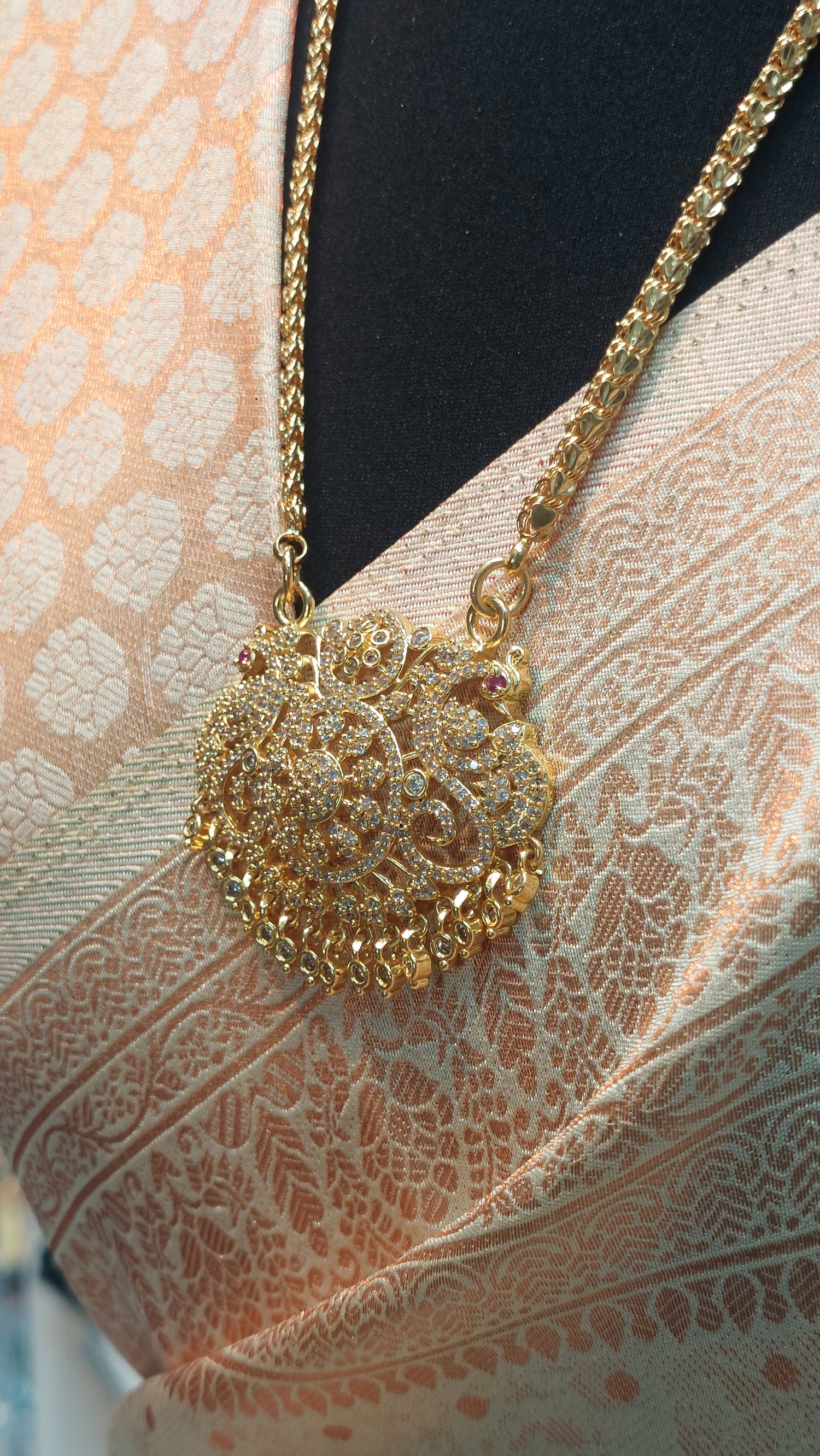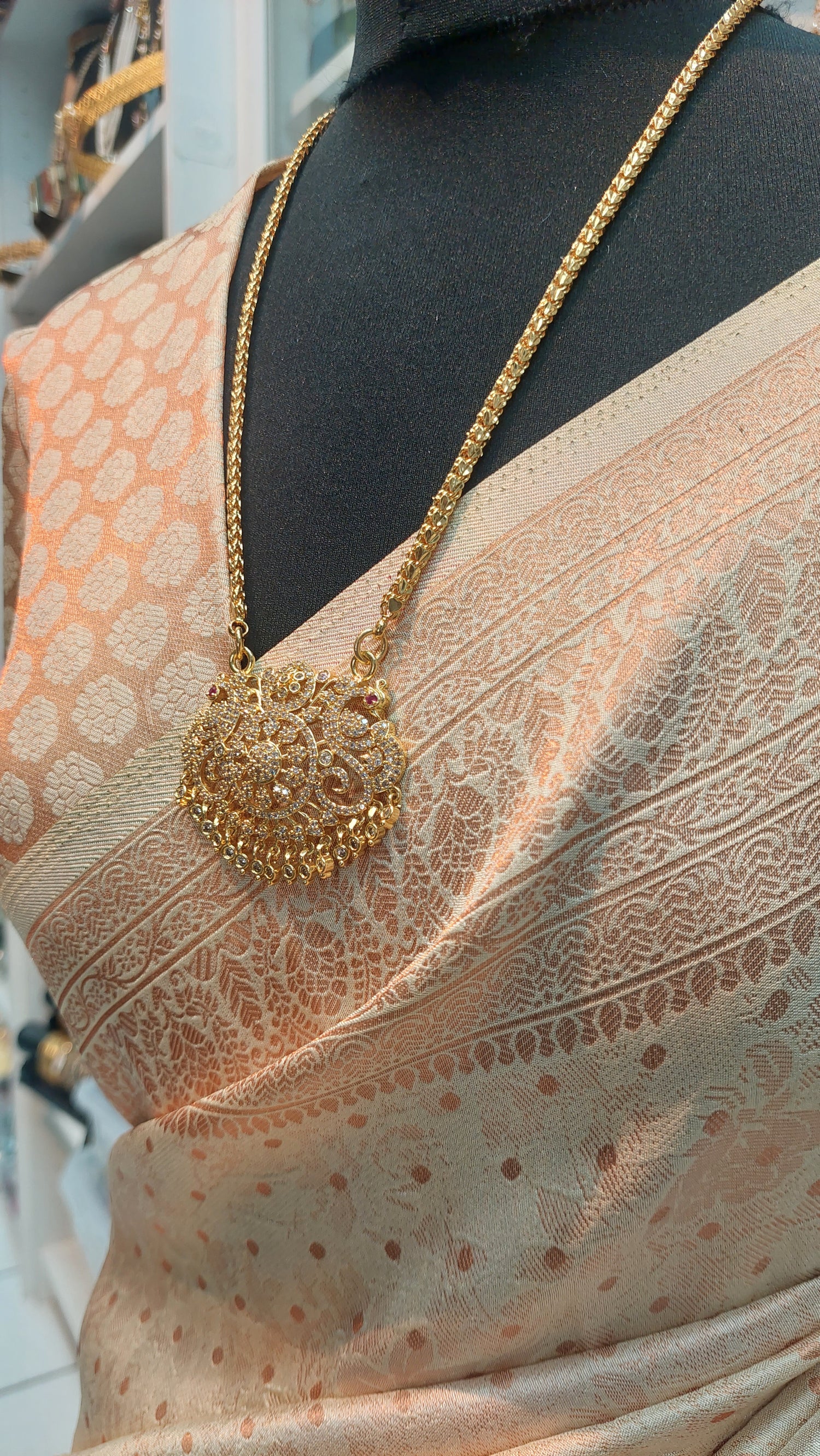 1 gram gold double anam pendant with 30 cm long thick gold chain.