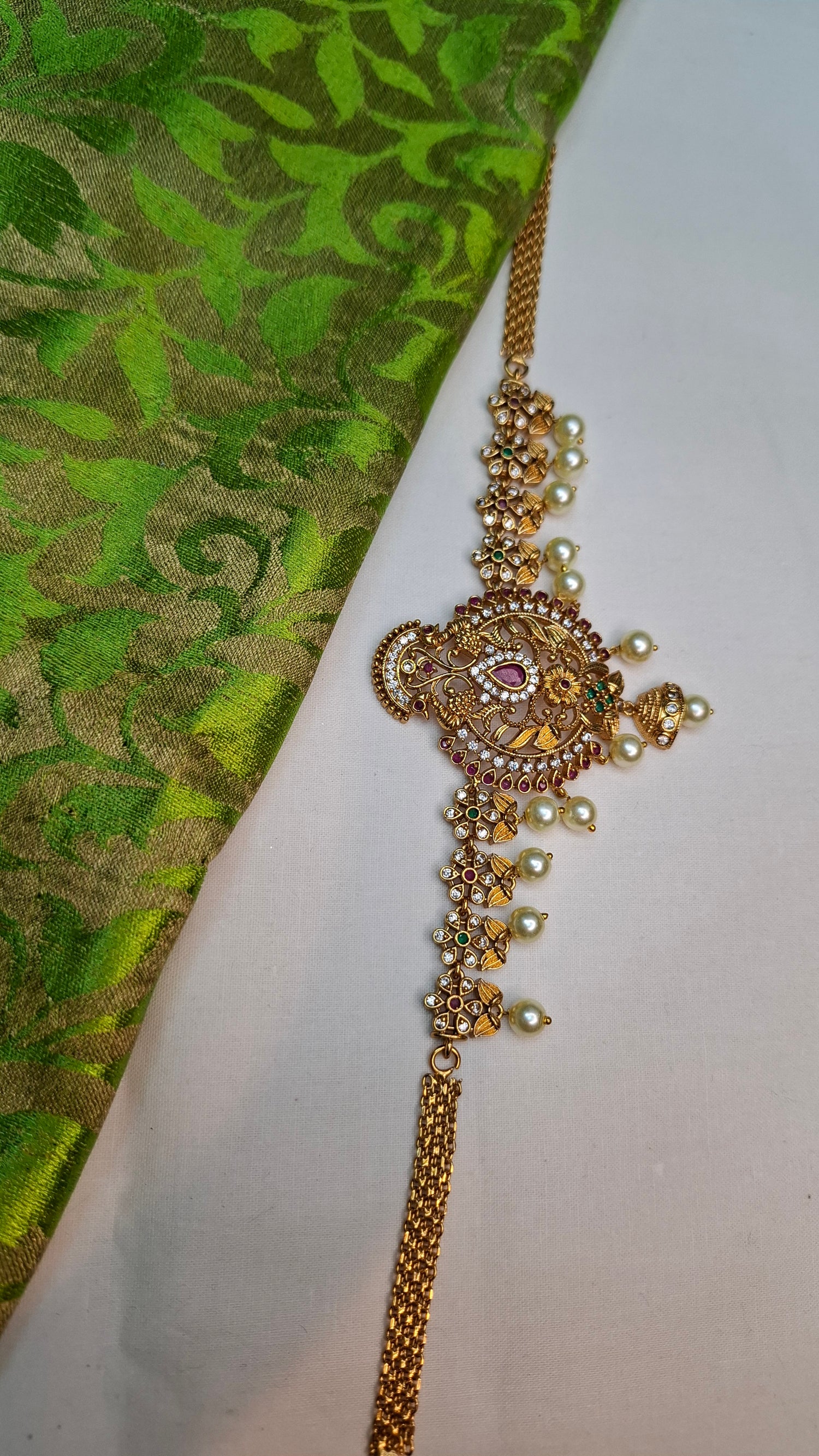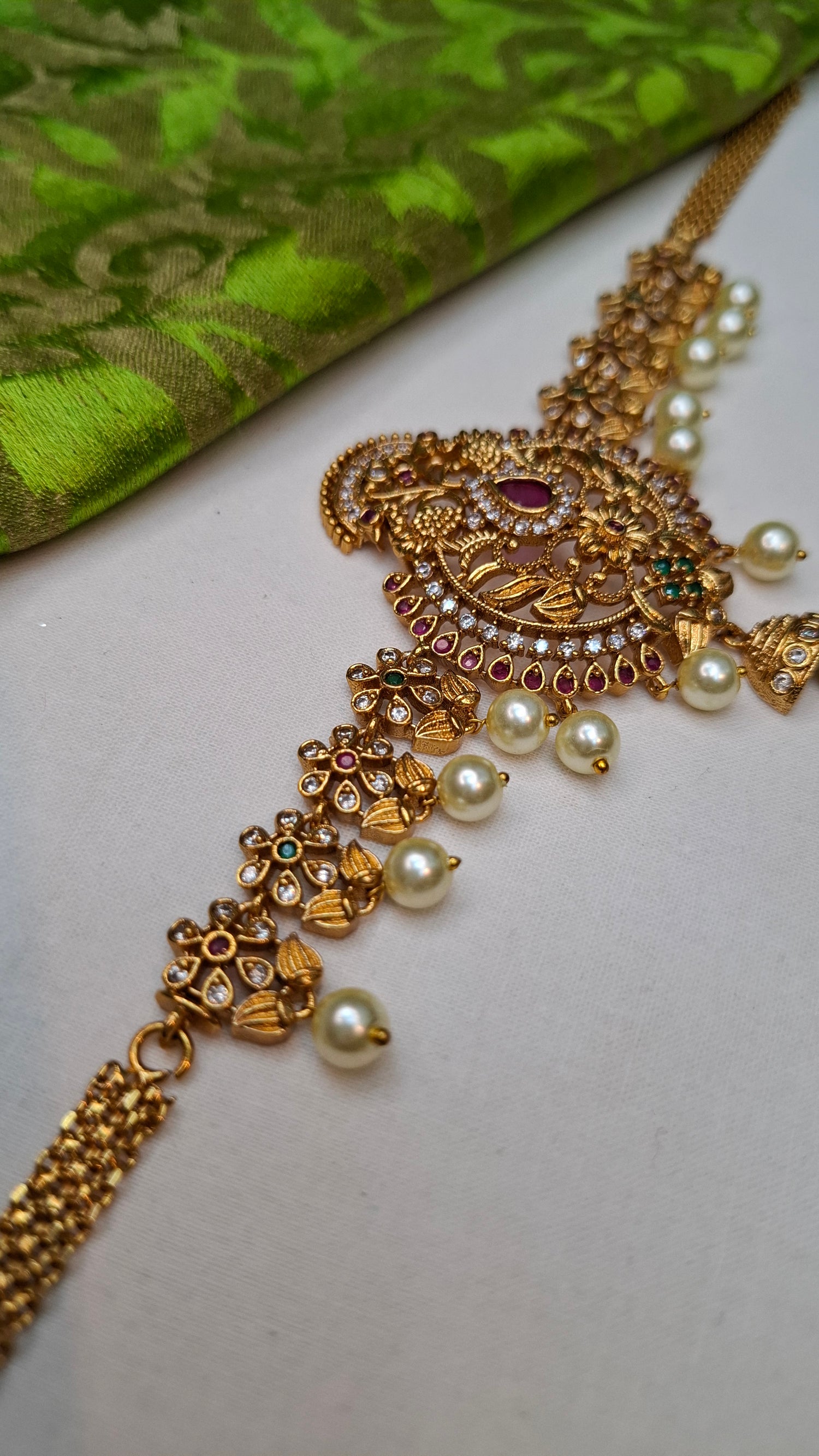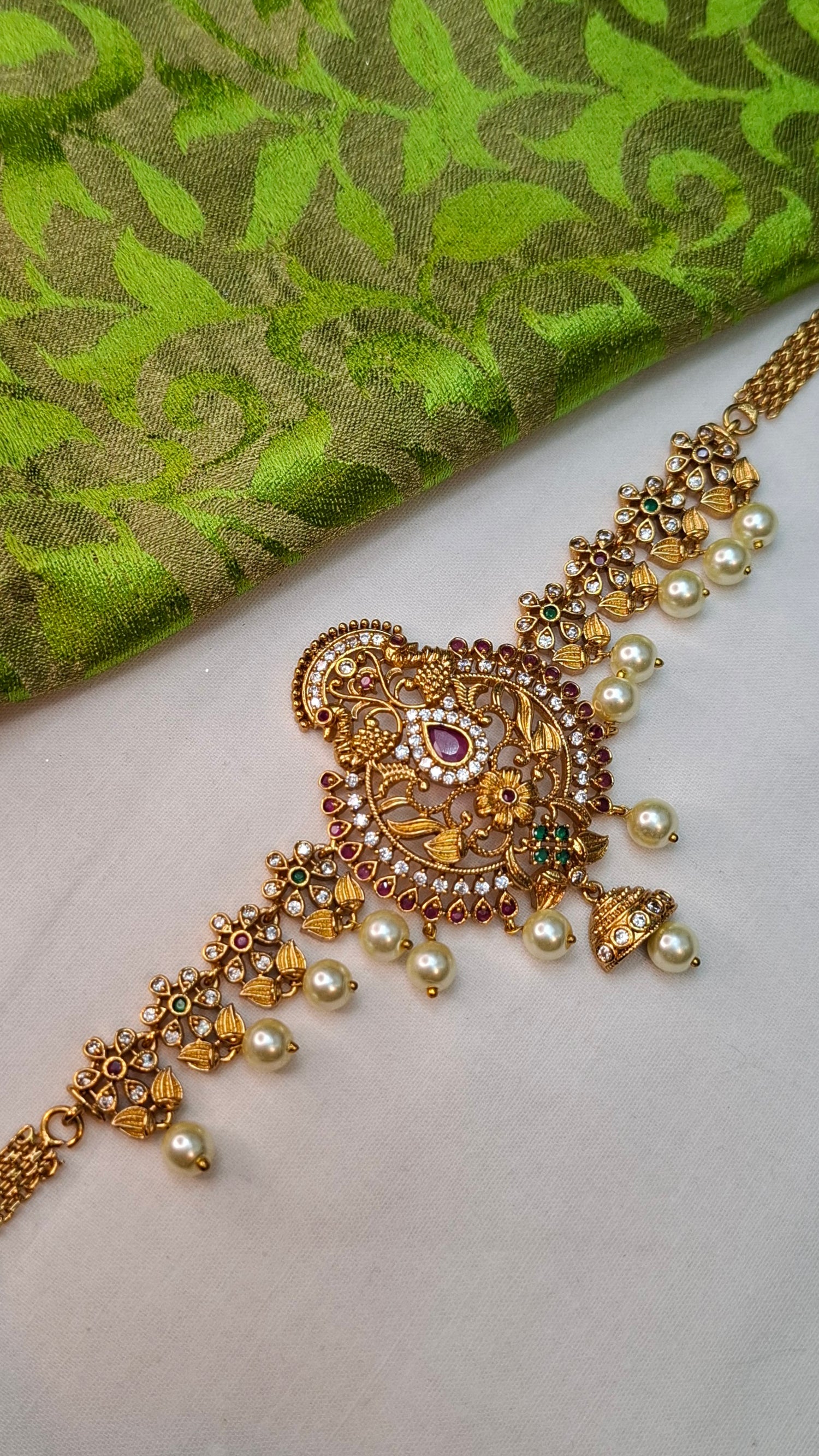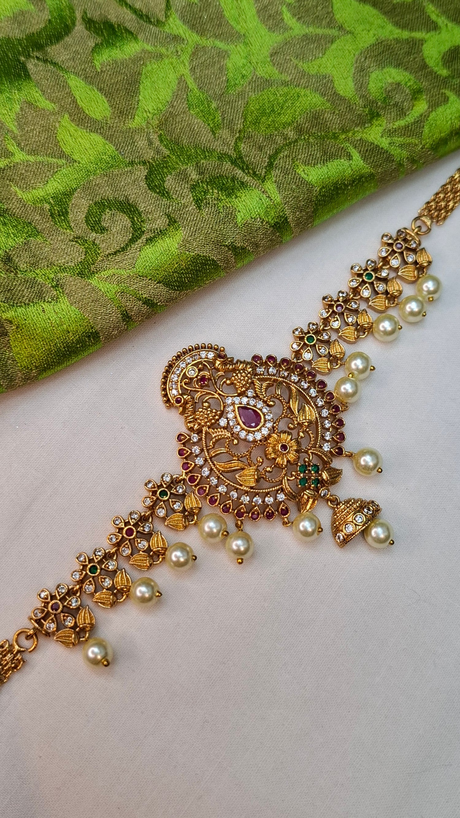 Temple chocker in matte gold finish. Comes with matching earrings.