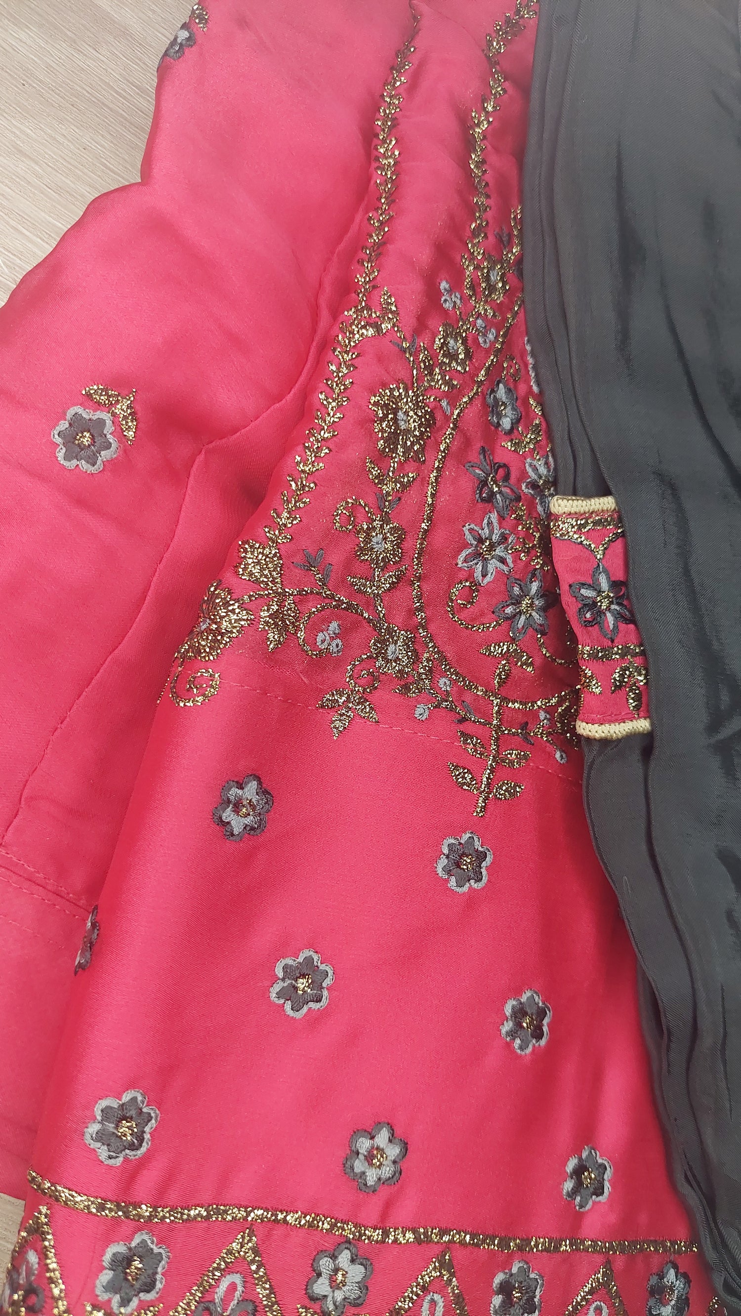 PINK & GREY TOP, GHAGHARA & DUPATTA