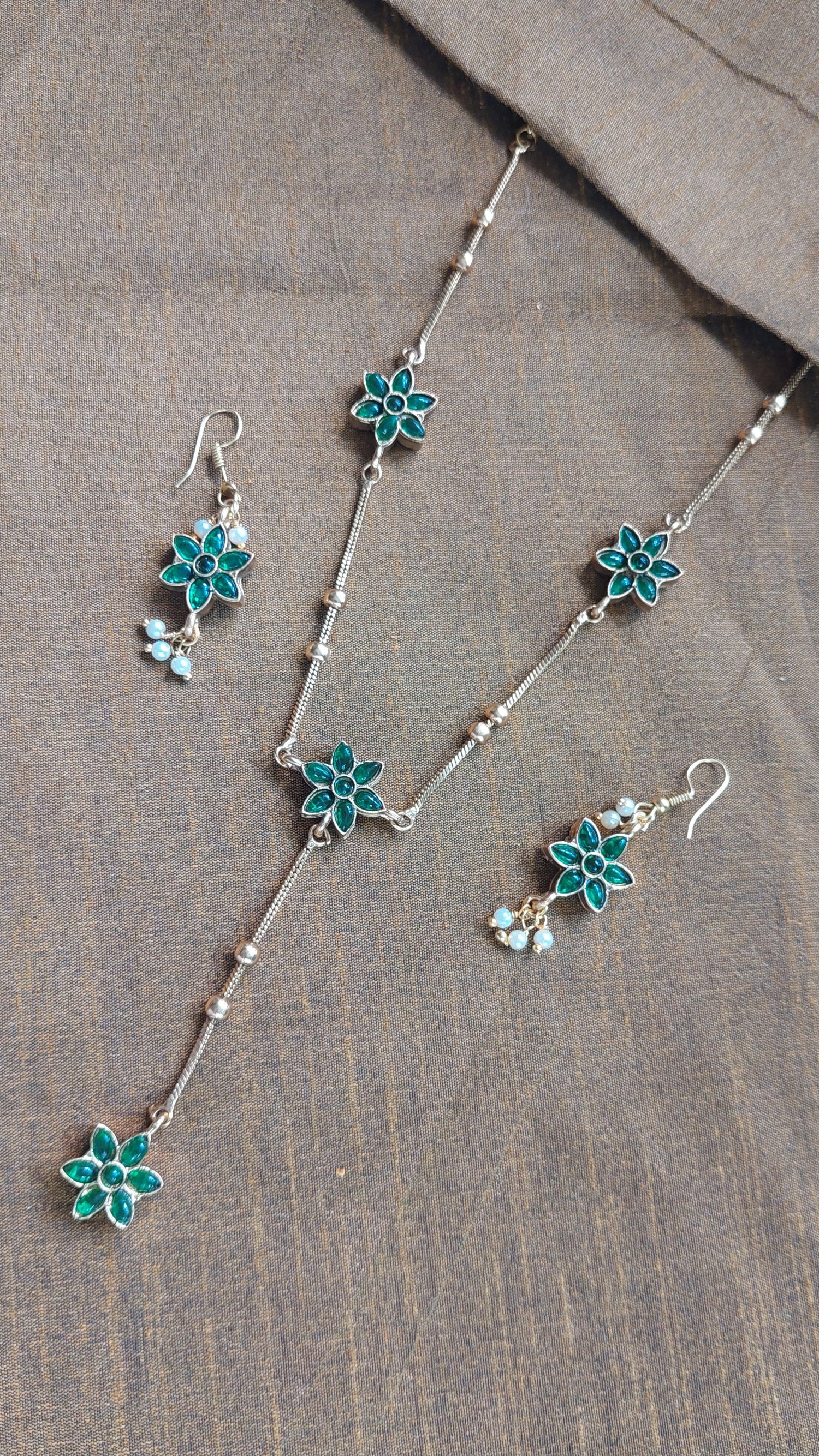Simple yet versatile green and Ruby necklace and earrings.