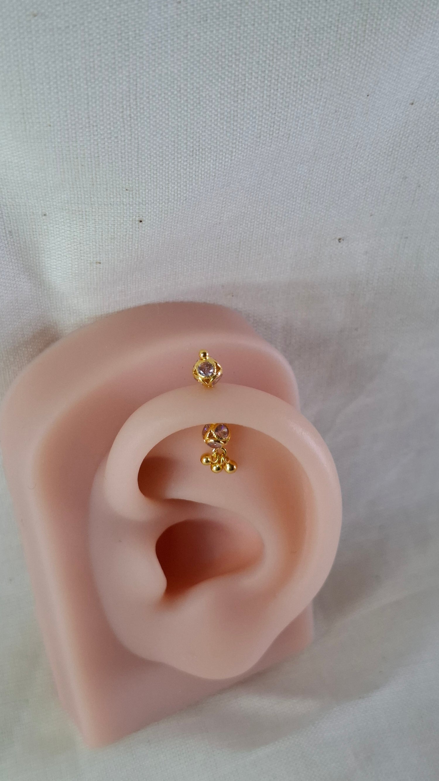 22ct solid gold bugadi also known as Koppu with baby pink stones. Gold mark stamped.