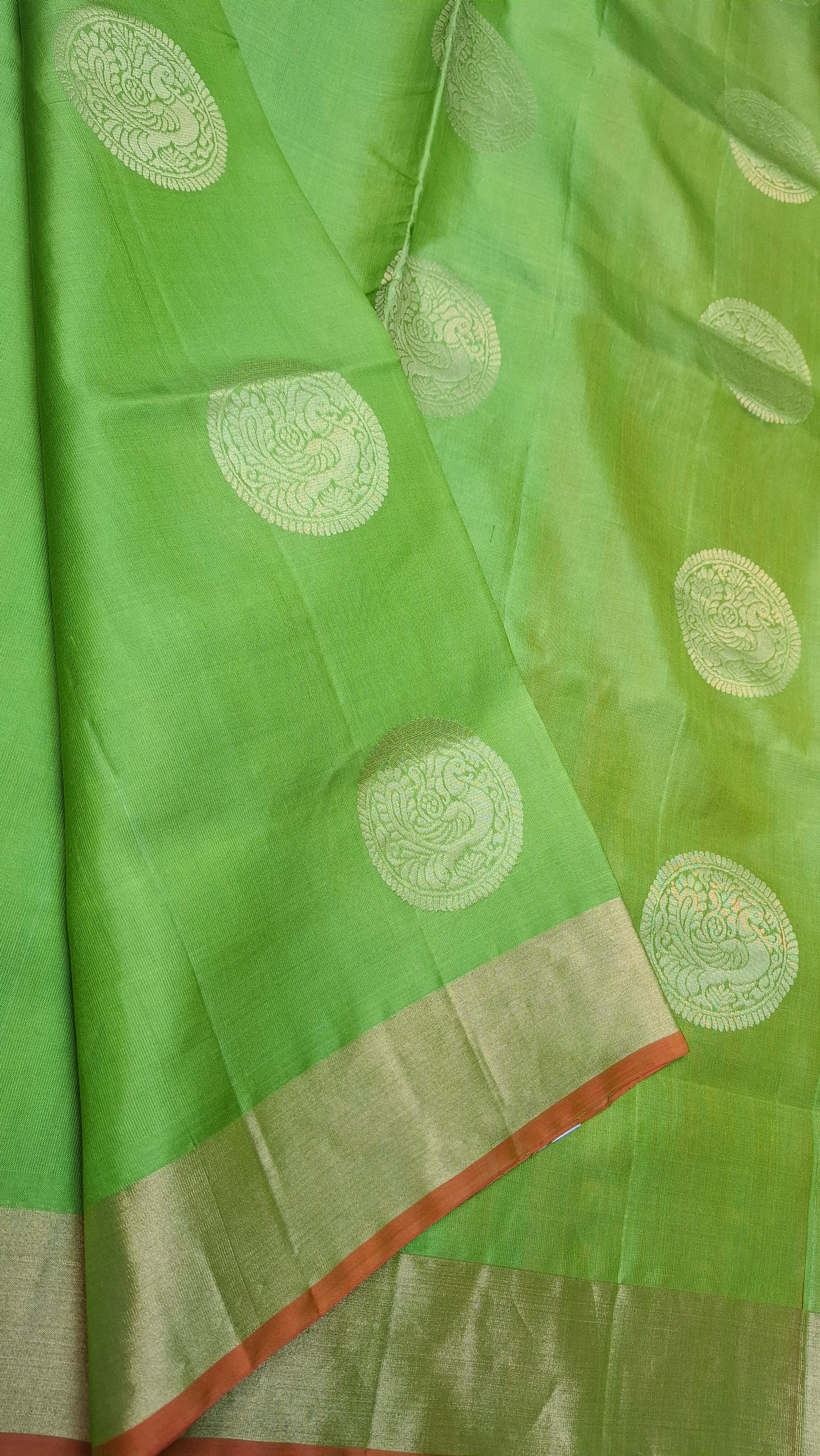 GREEN & ORANGE PURE SOFT SILK