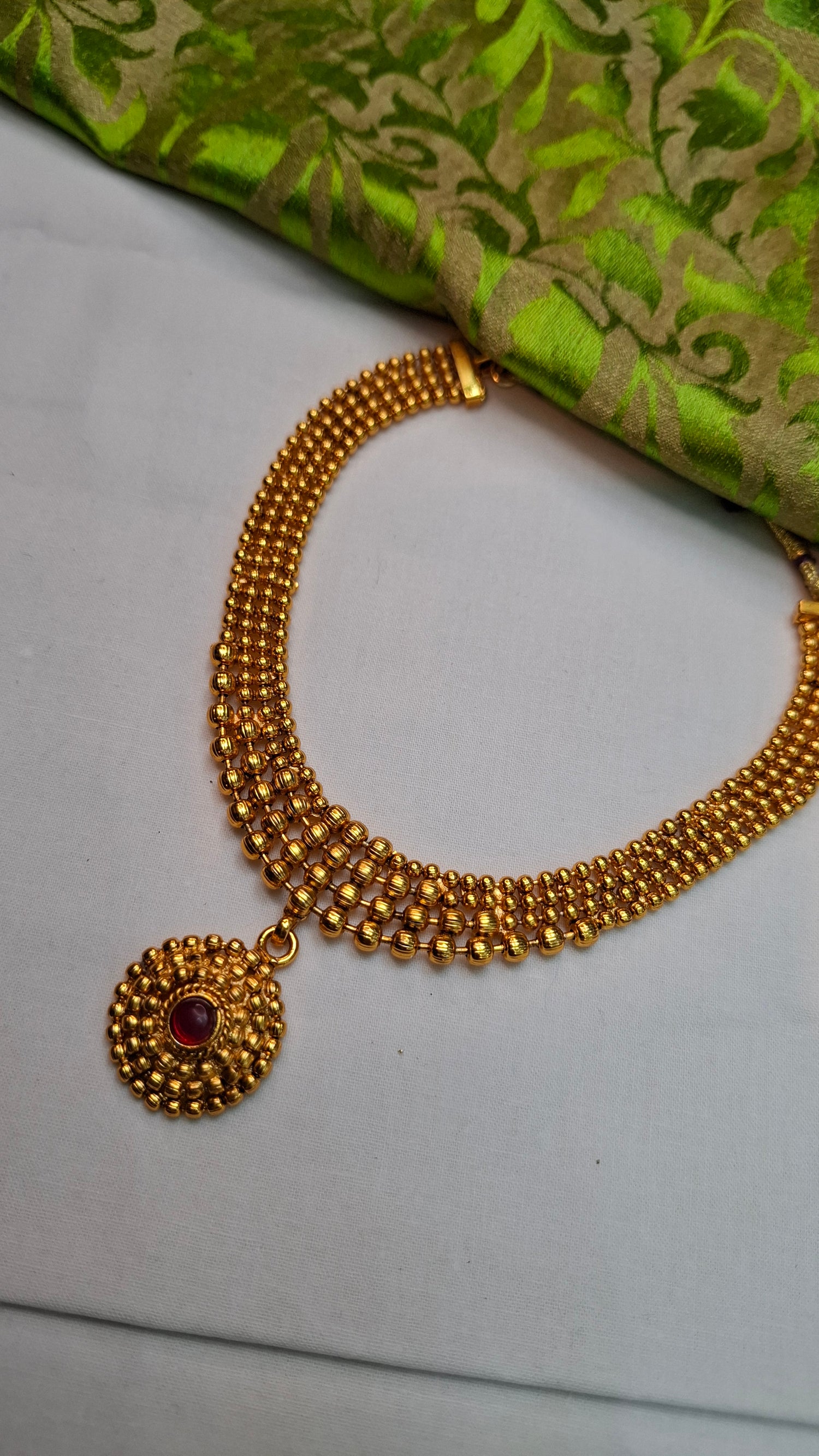 Matte gold finish short necklace & stud earrings.