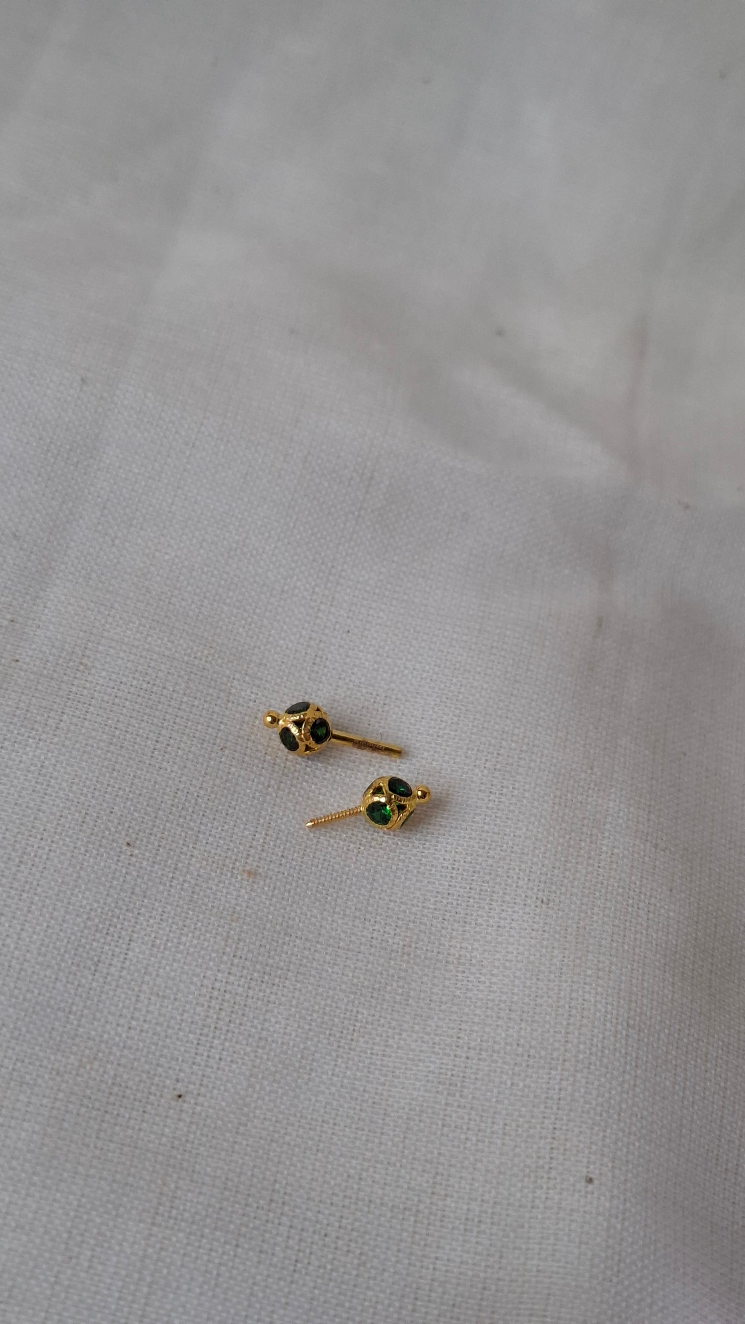 22ct solid gold bugadi also known as Koppu with green stones. Gold mark stamped.