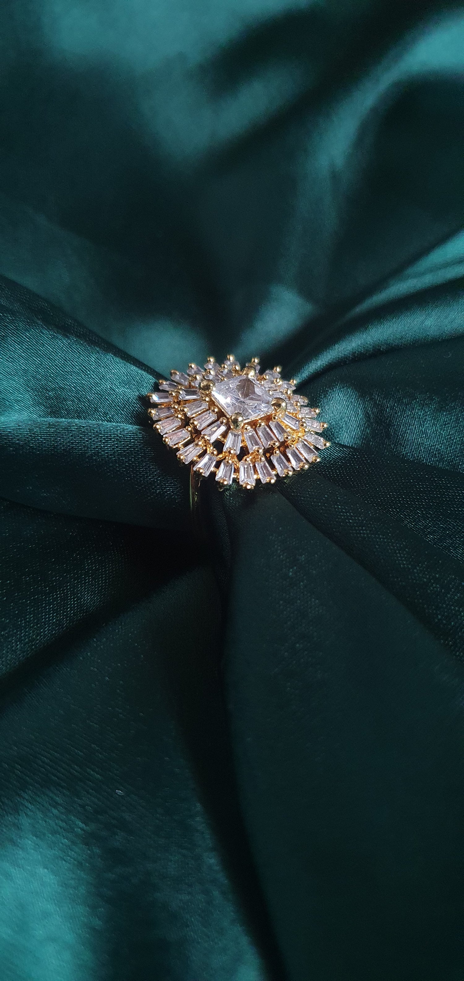 A.D stones ring in white, yellow gold finish.