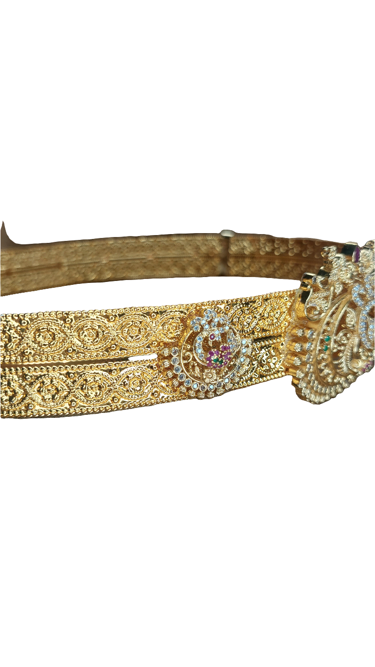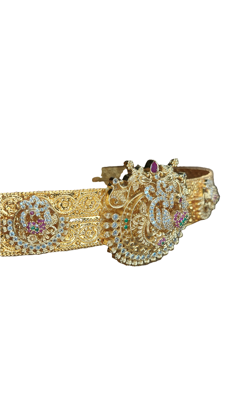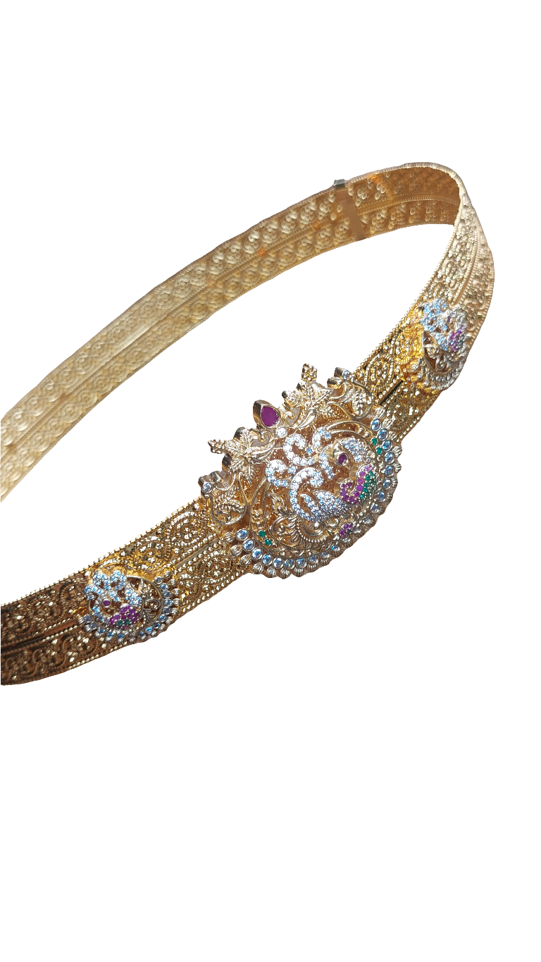 Adjustable adult size antique gold hip belth and A.D stone embellishments.