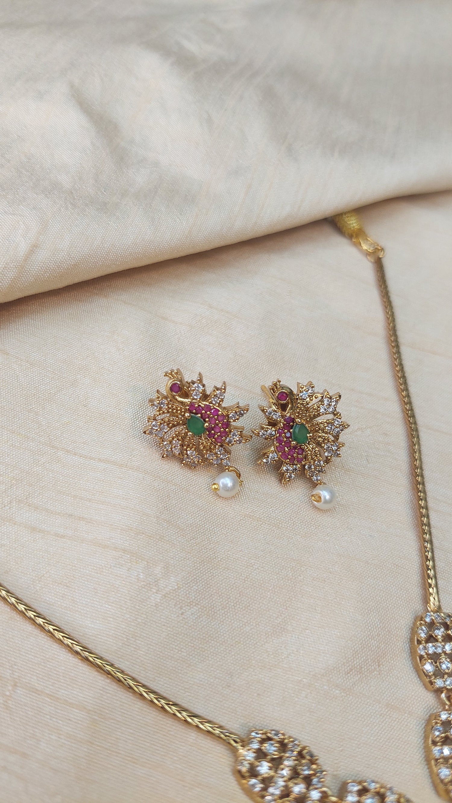 Antique peacock short necklace set. Comes with matching earrings.