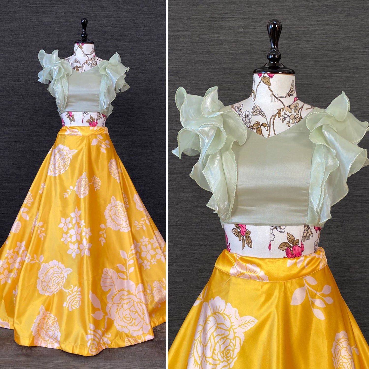 Heavy fluid silk Lehengha with cane-cane.