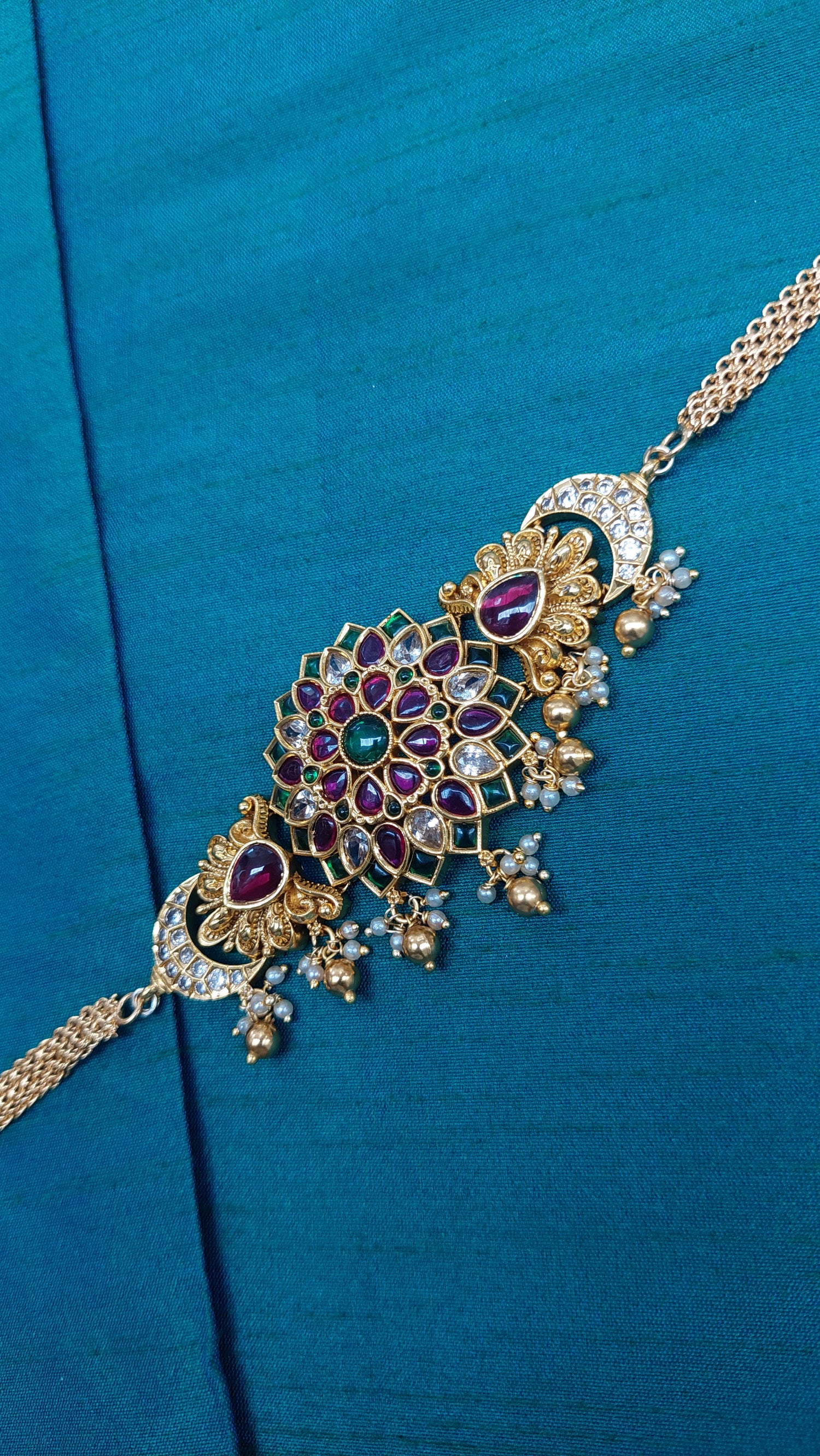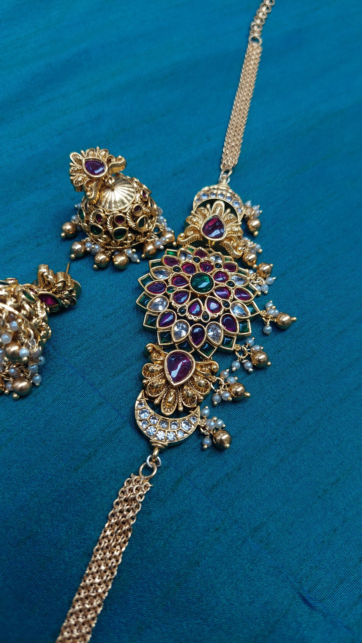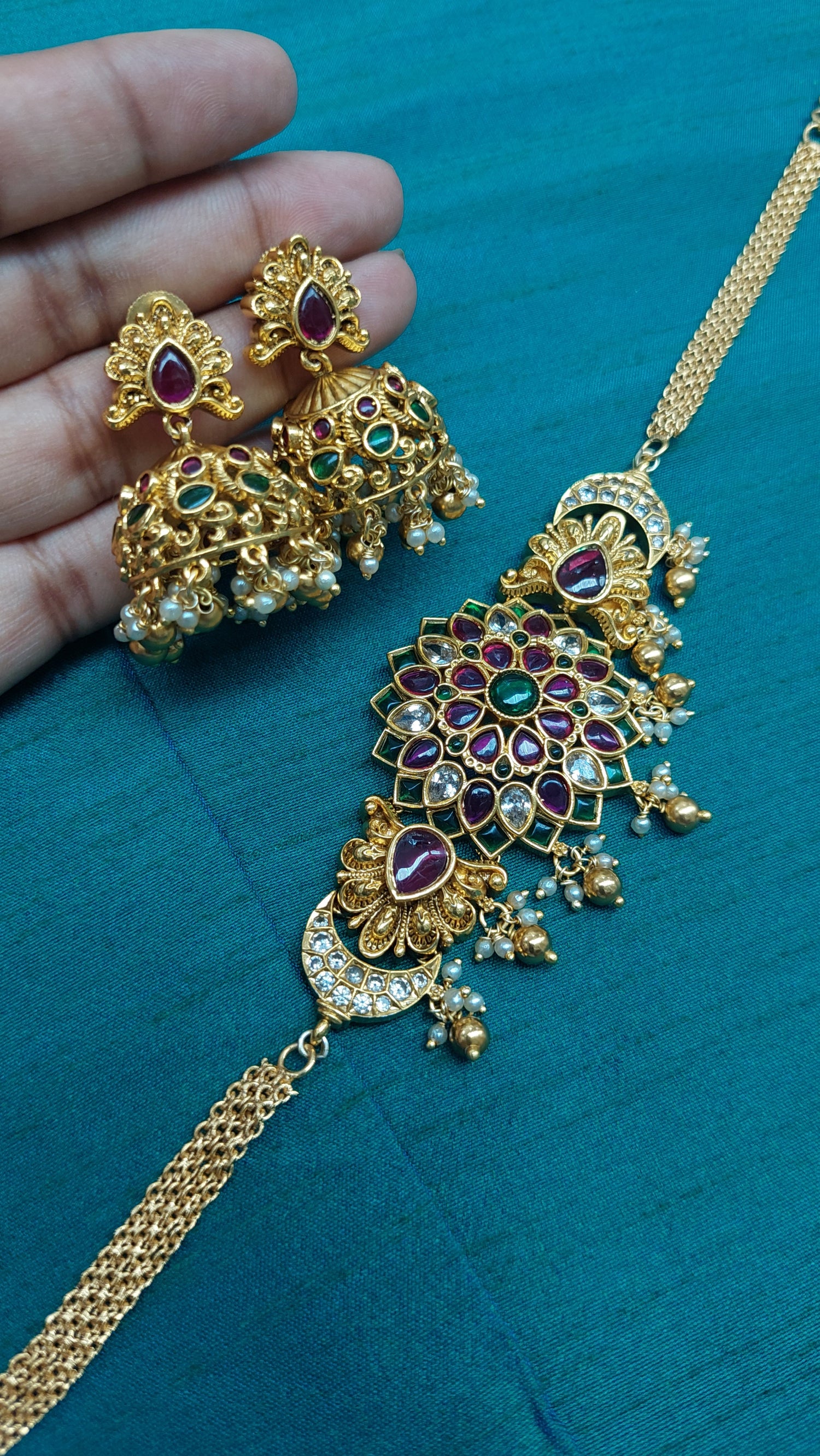 Chocker style kemp chocker with adjustable back chain. Comes with matching jumkha earrings.