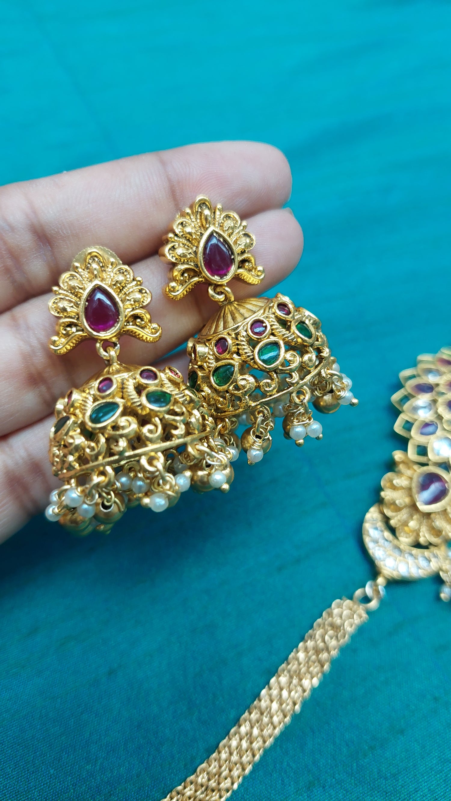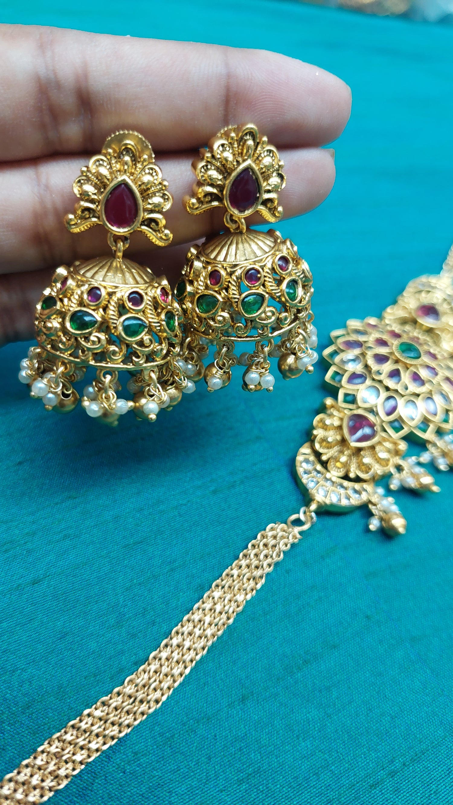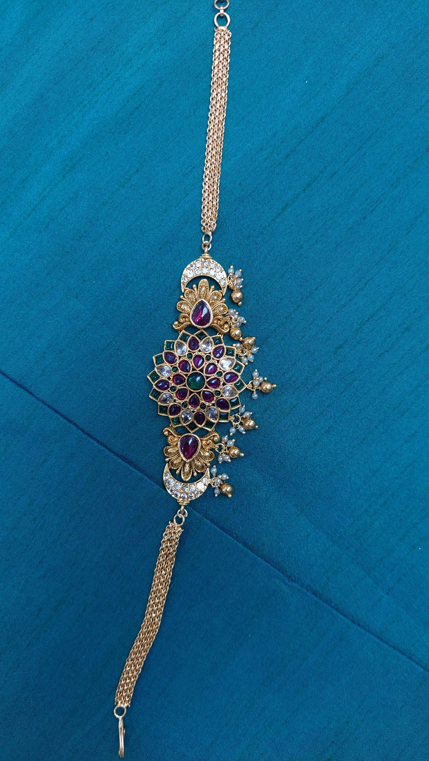 Chocker style kemp chocker with adjustable back chain. Comes with matching jumkha earrings.