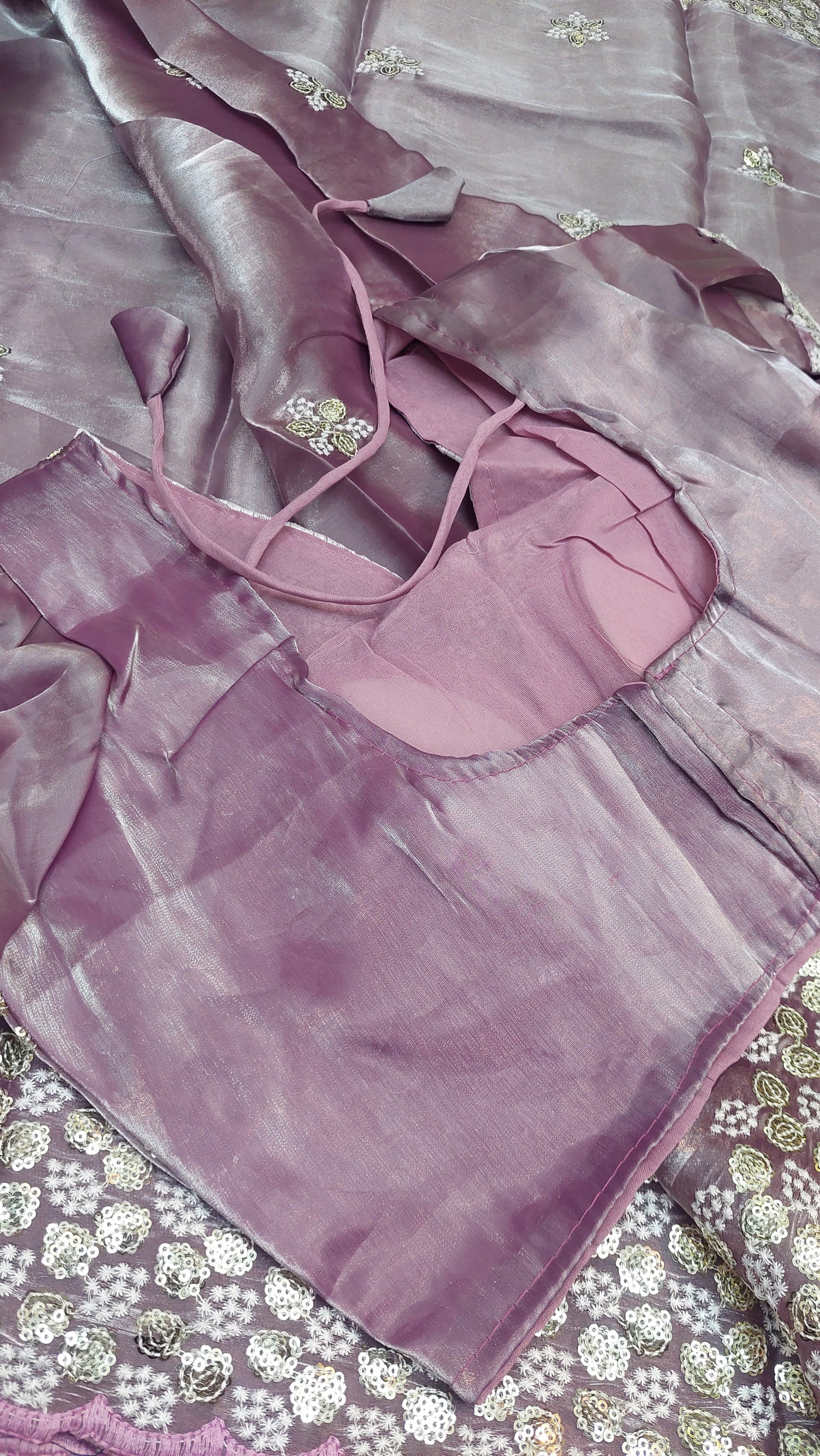 LILAC TISSUE SAREE + READY-MADE BLOUSE