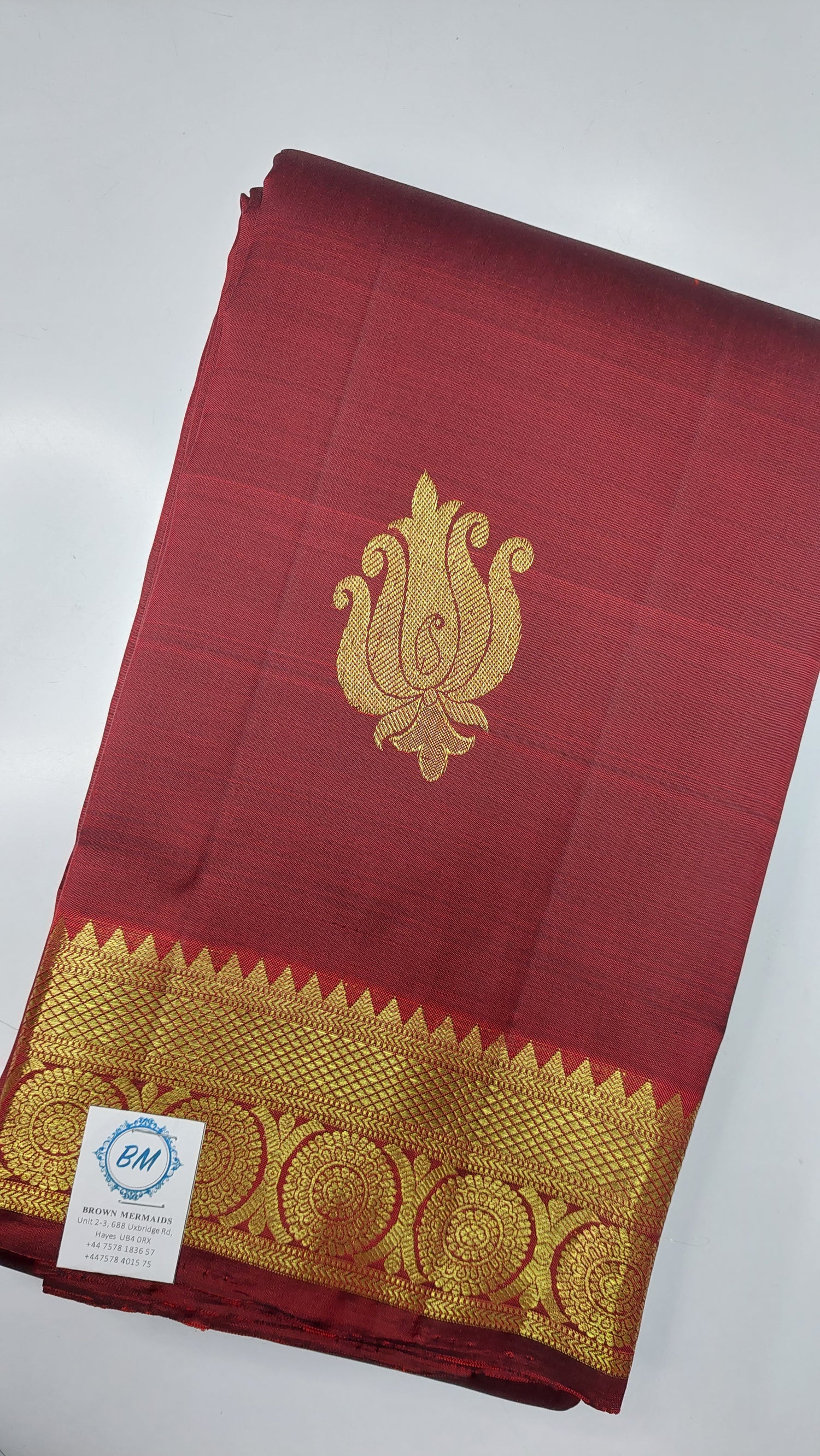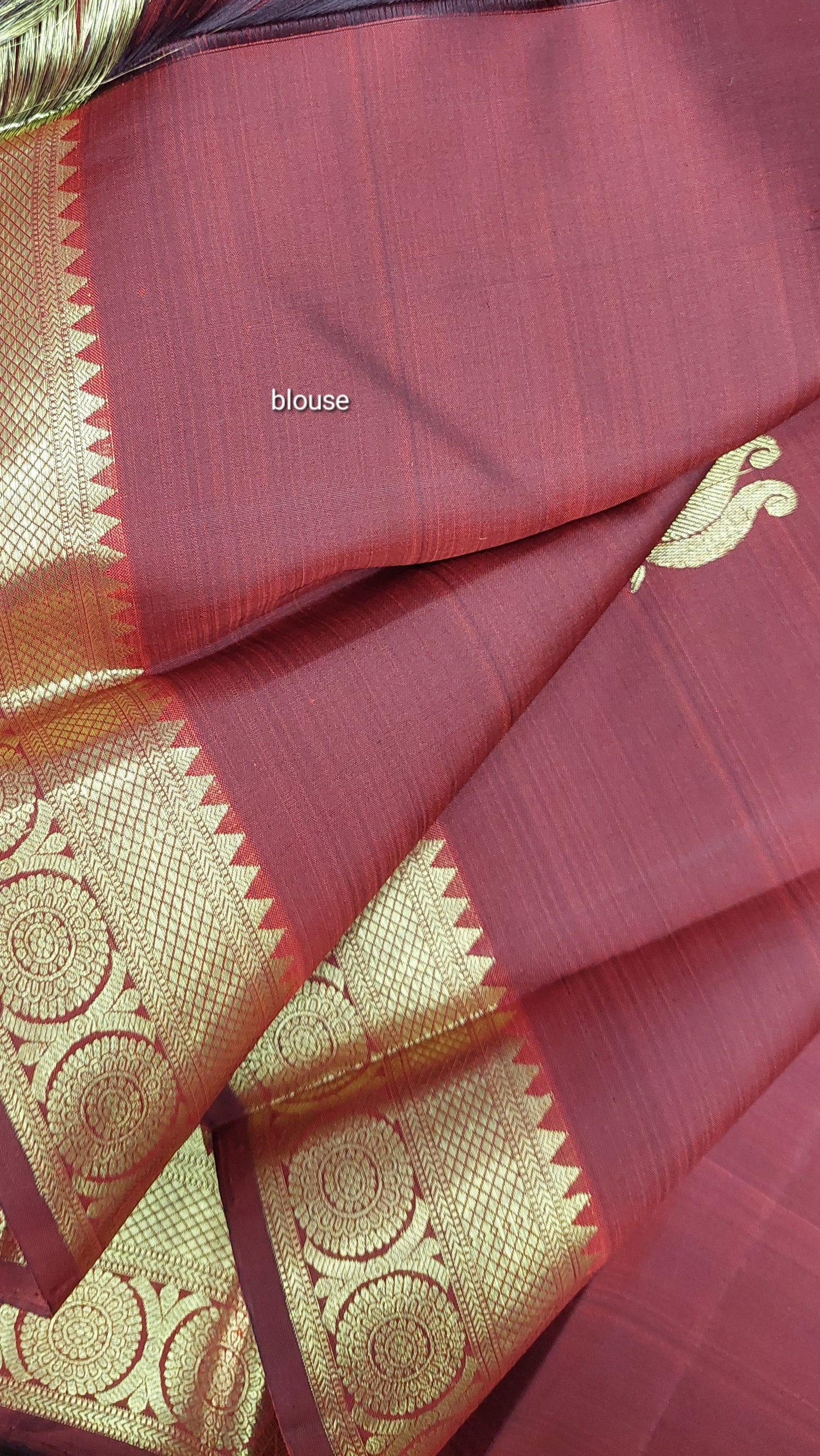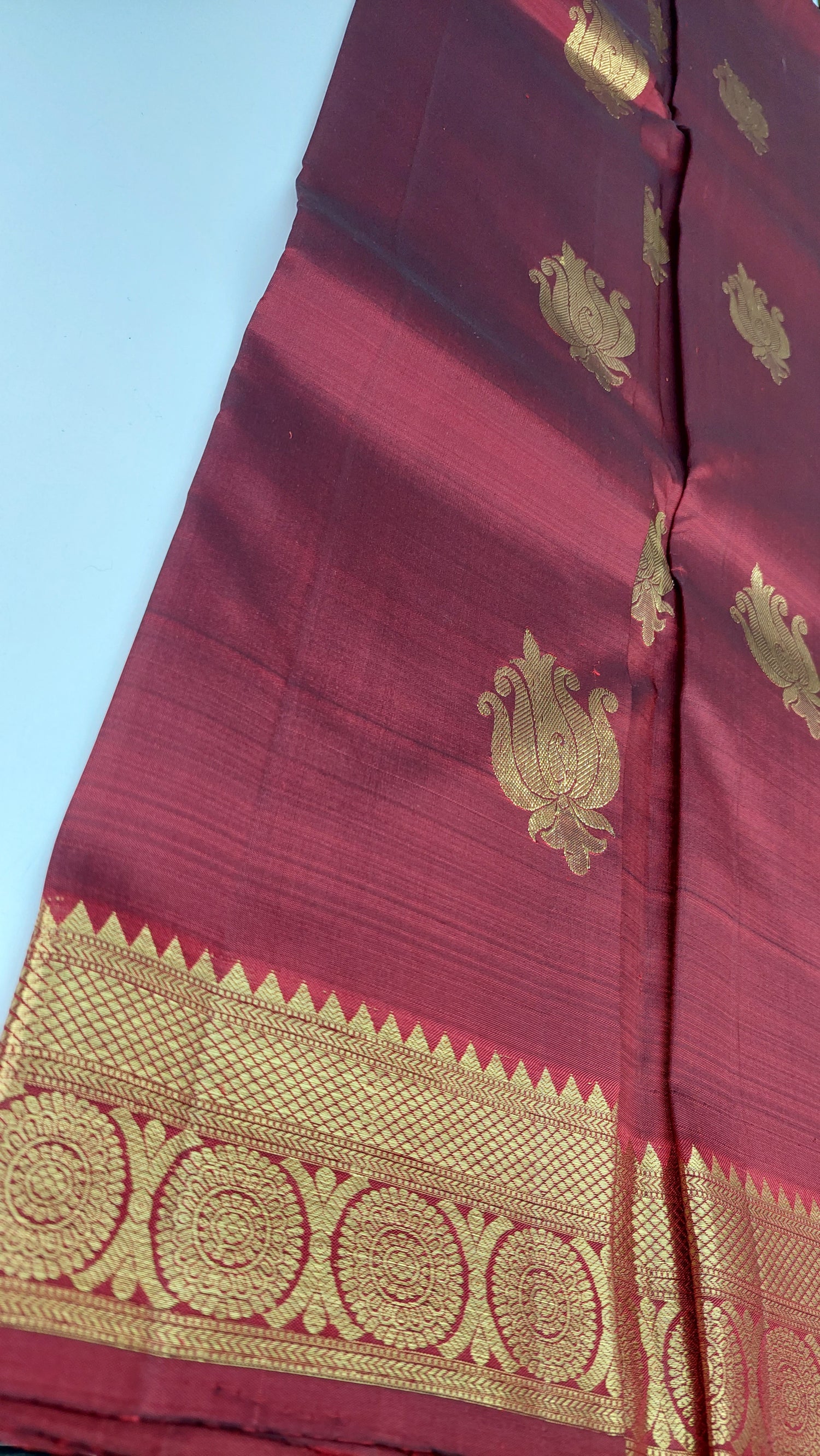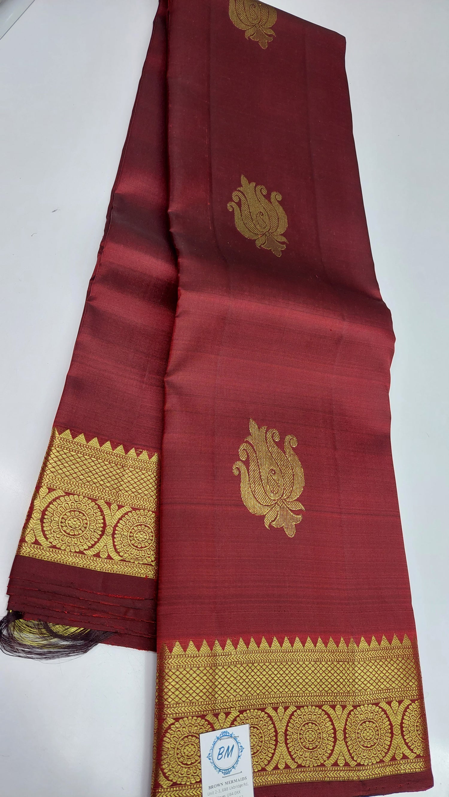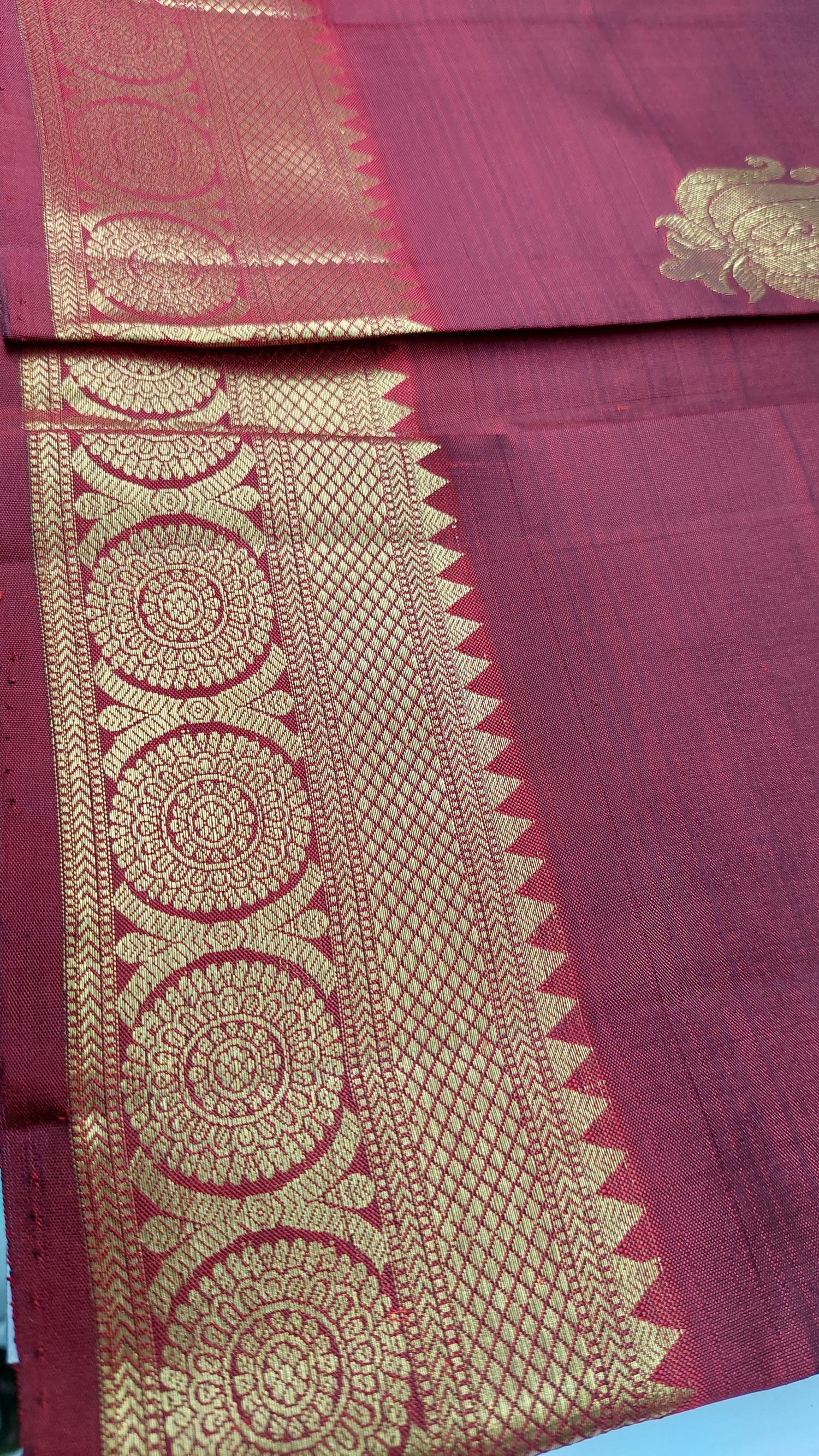 Maroon Kanchipuram Silk Saree; ideal for Koorai saree (Bridal Saree)