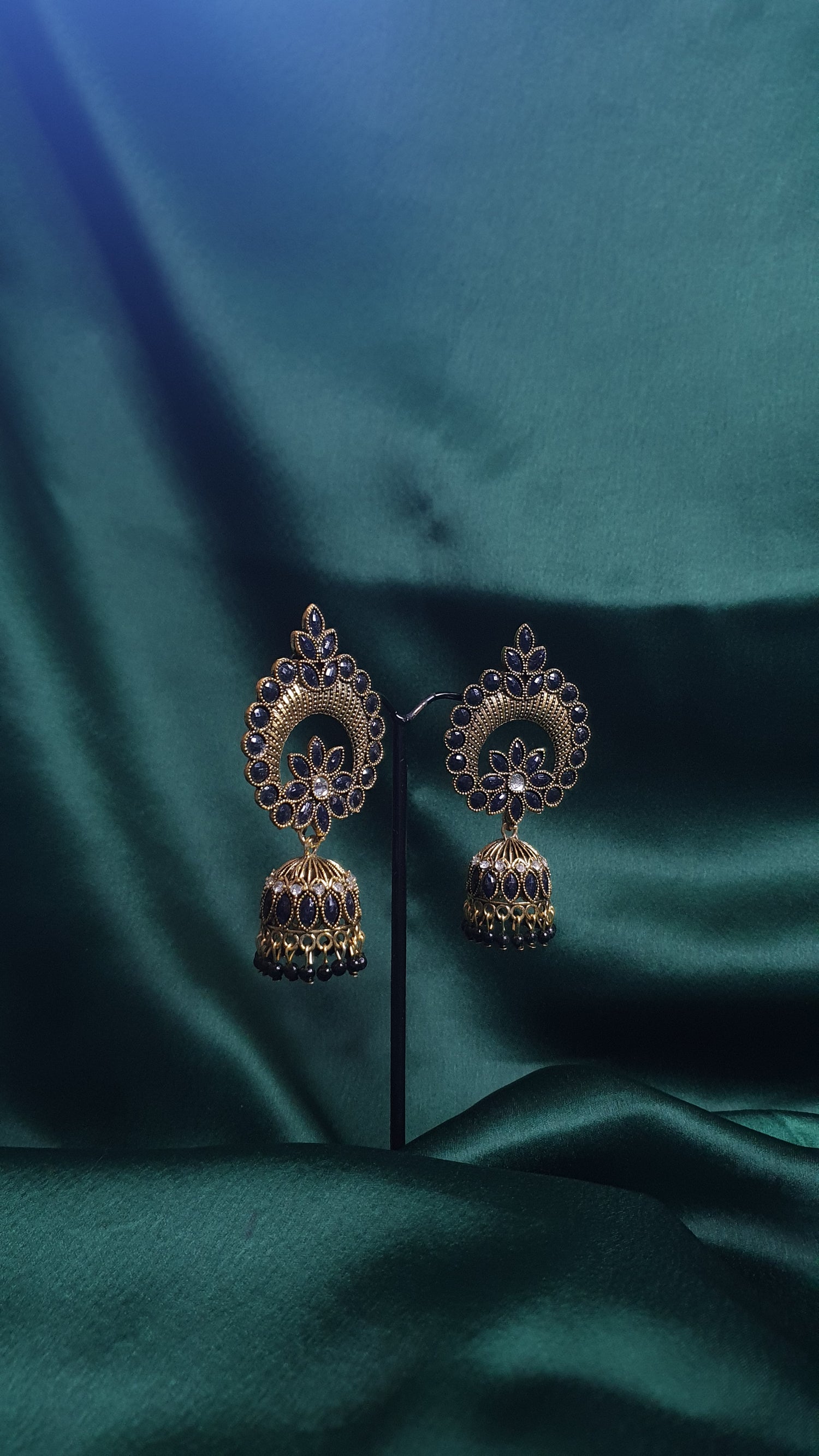Large jumkhas, peacock inspired.