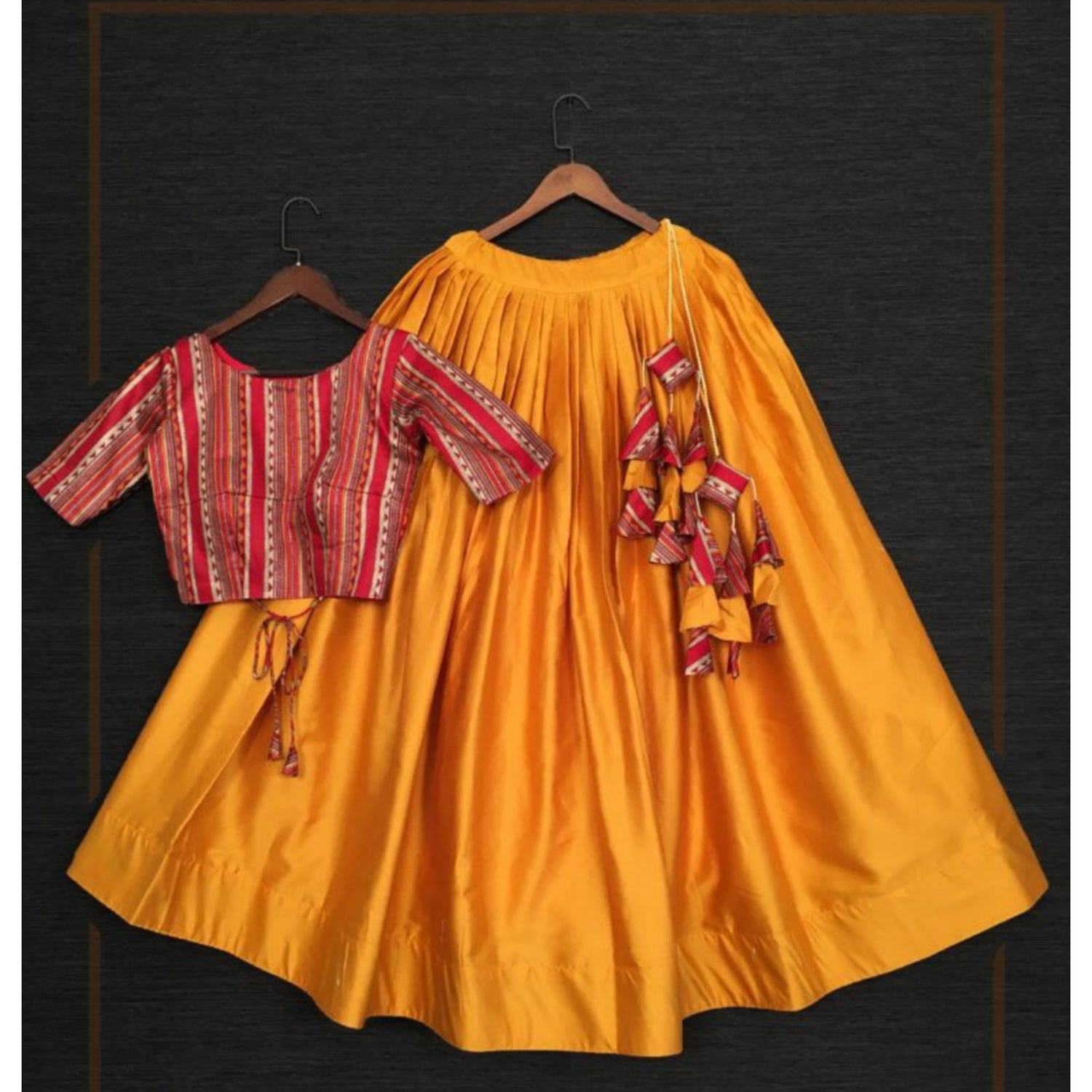 Yellow lehengha skirt paired witj designer blouse.