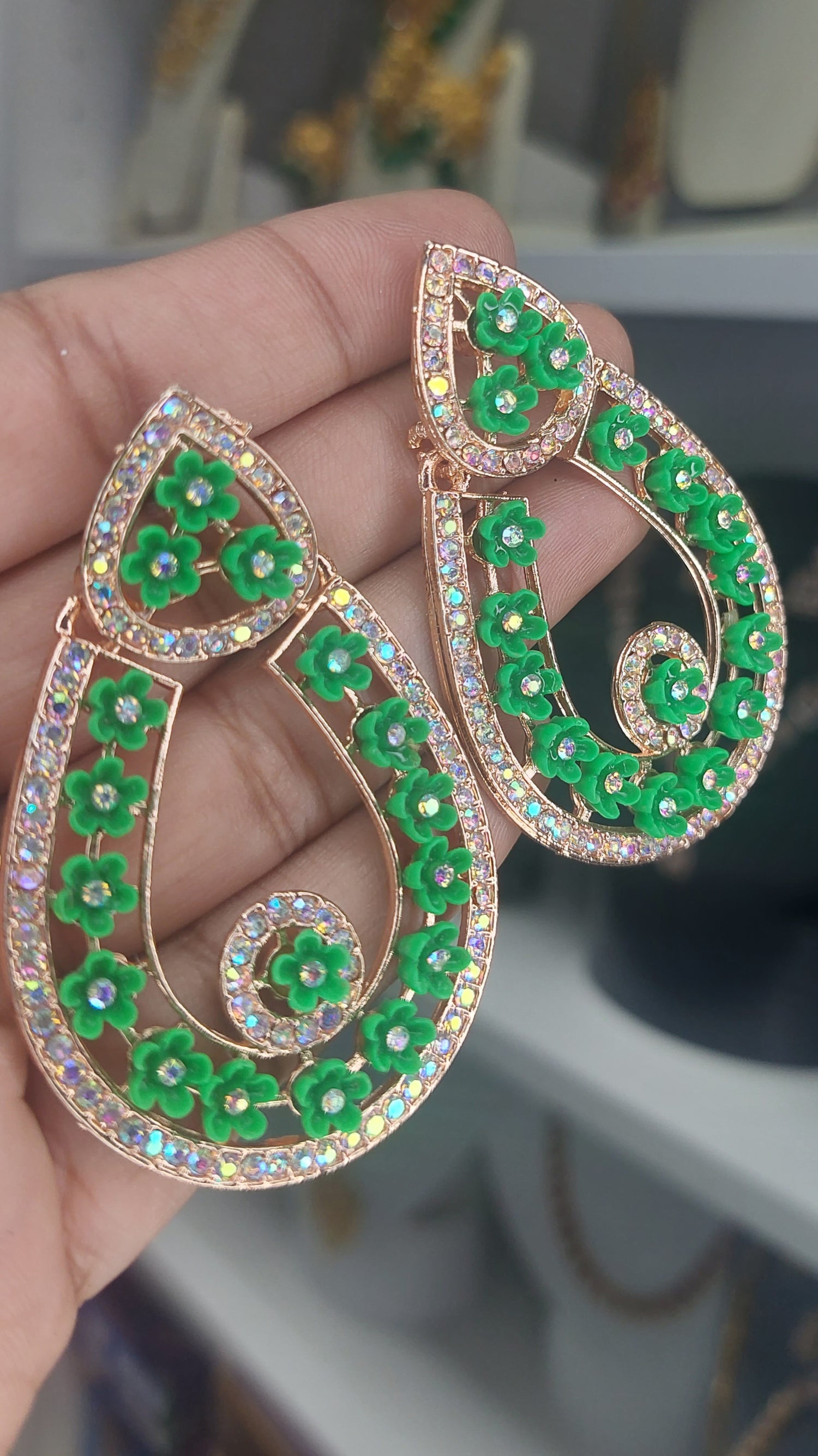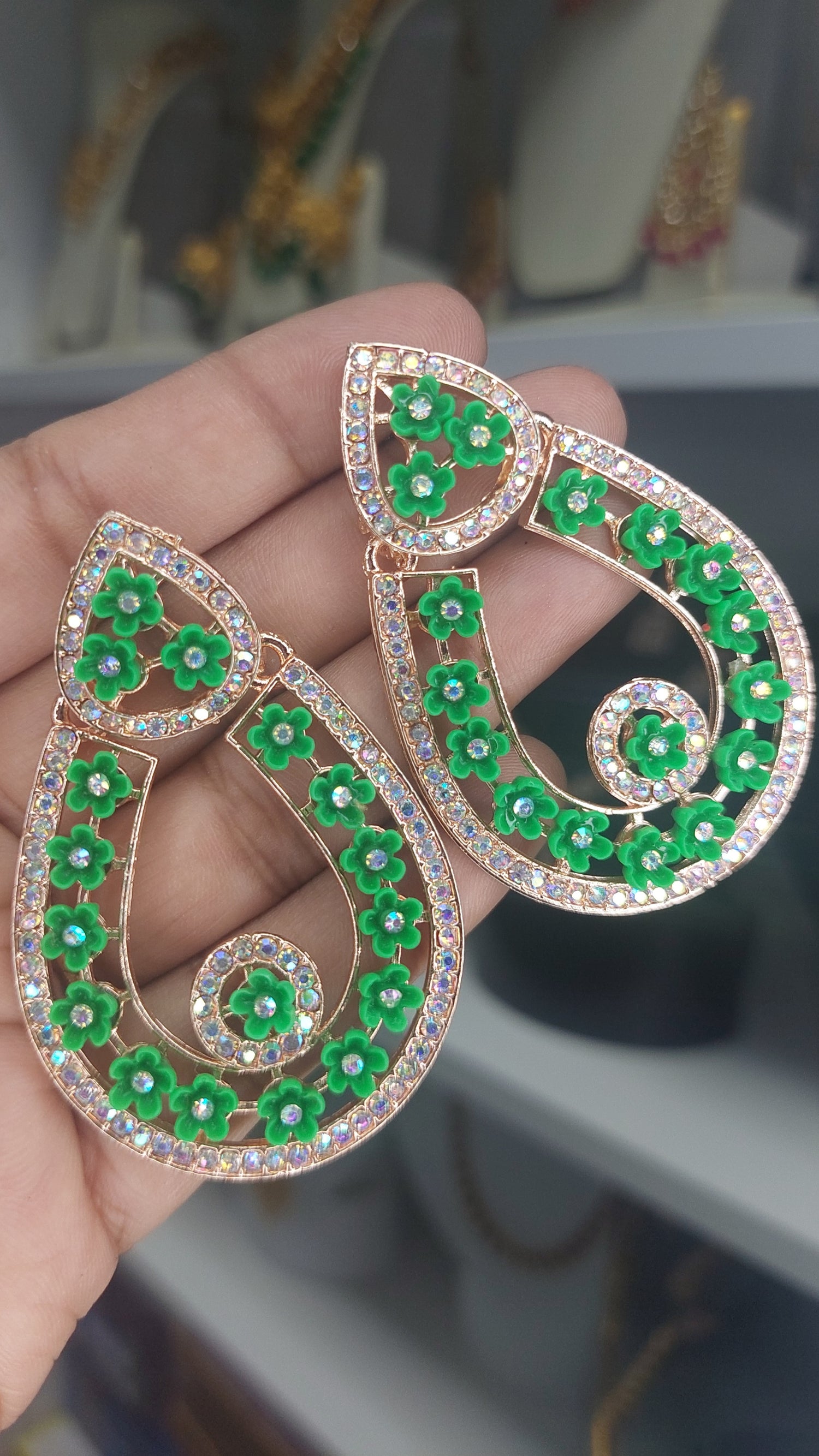 ROSE GOLD & GREEN FASHION EARRINGS