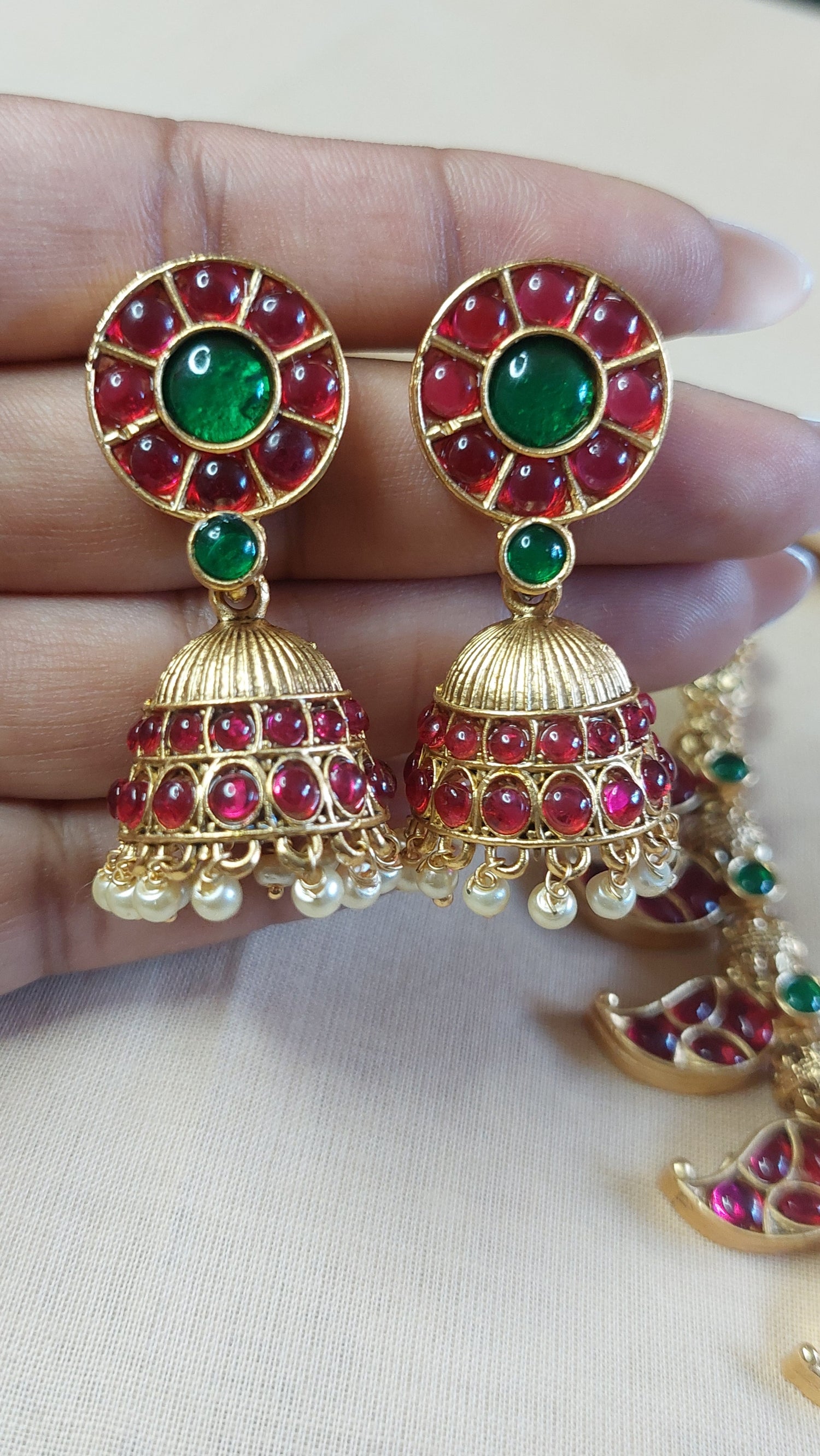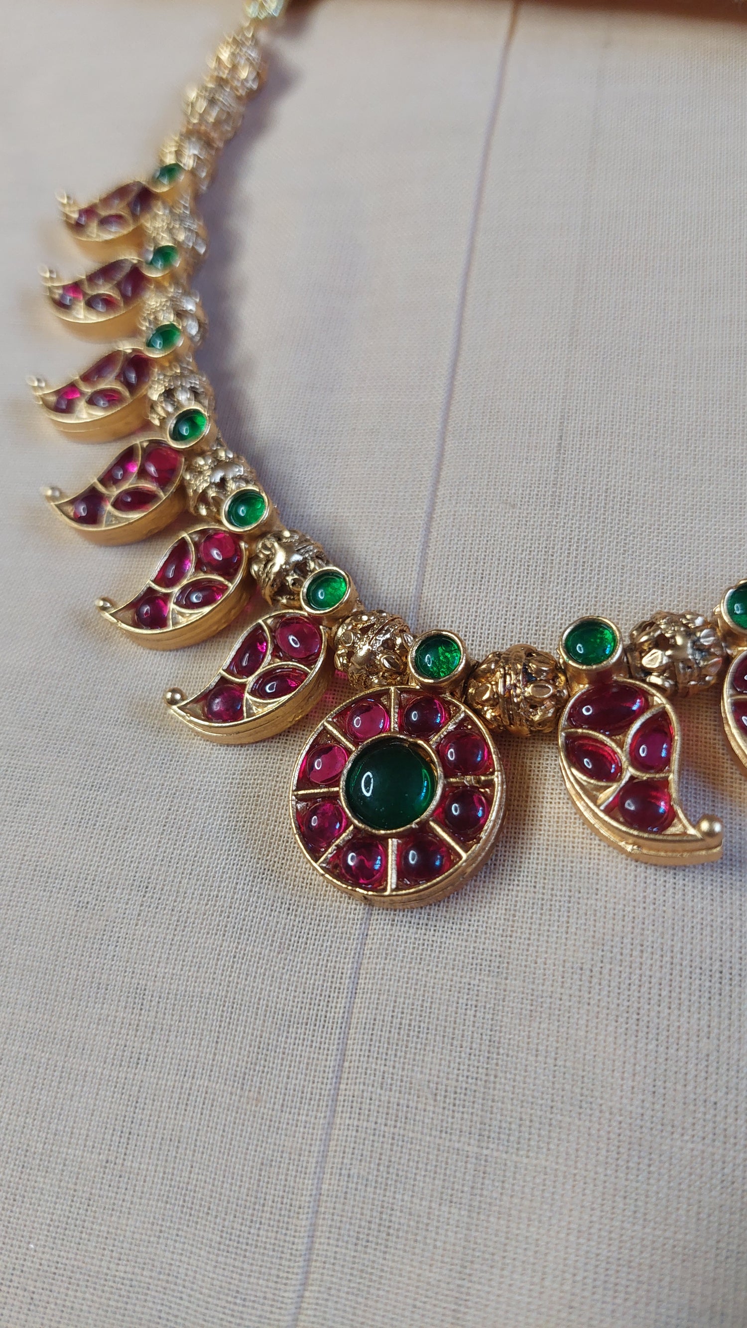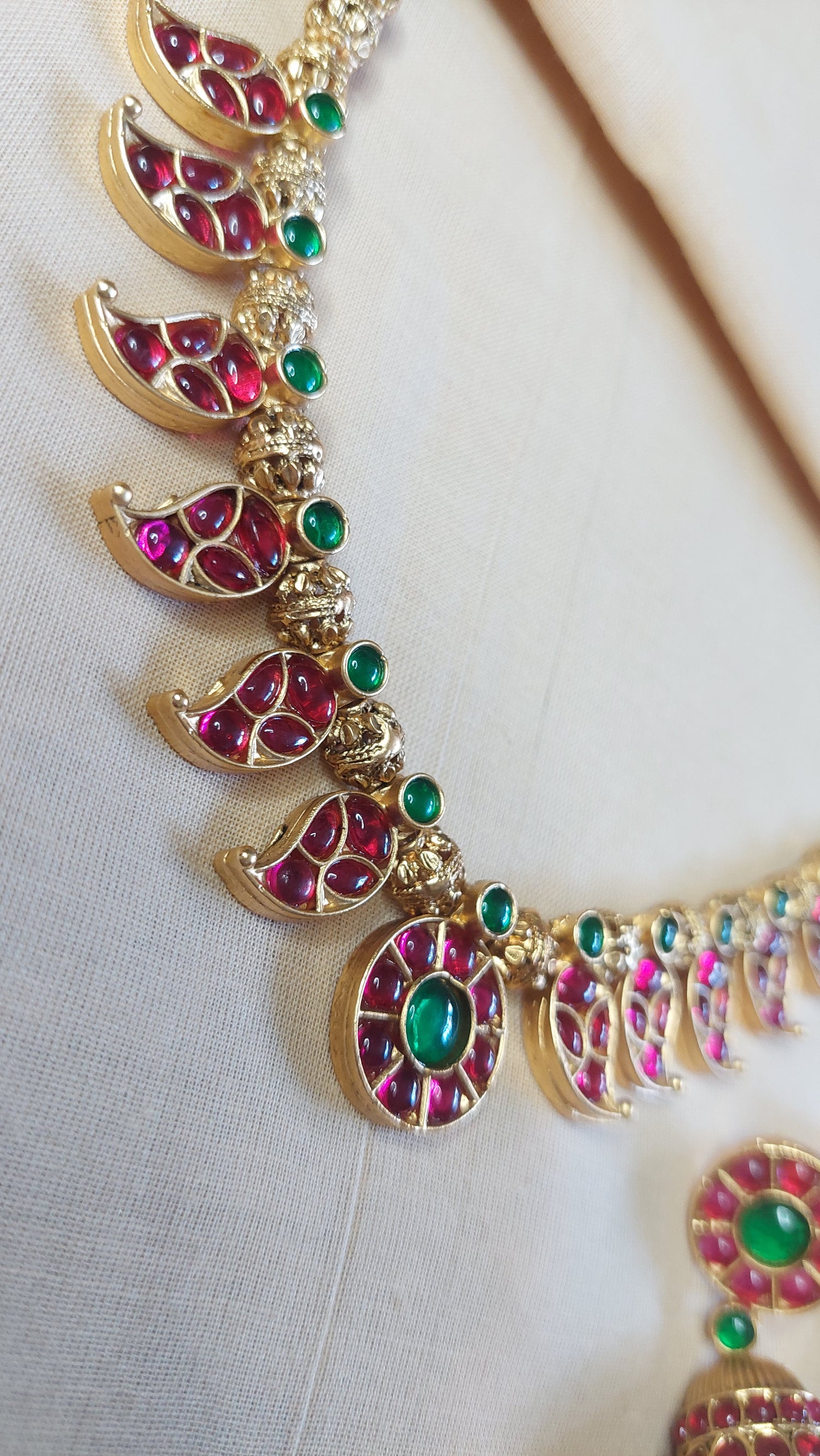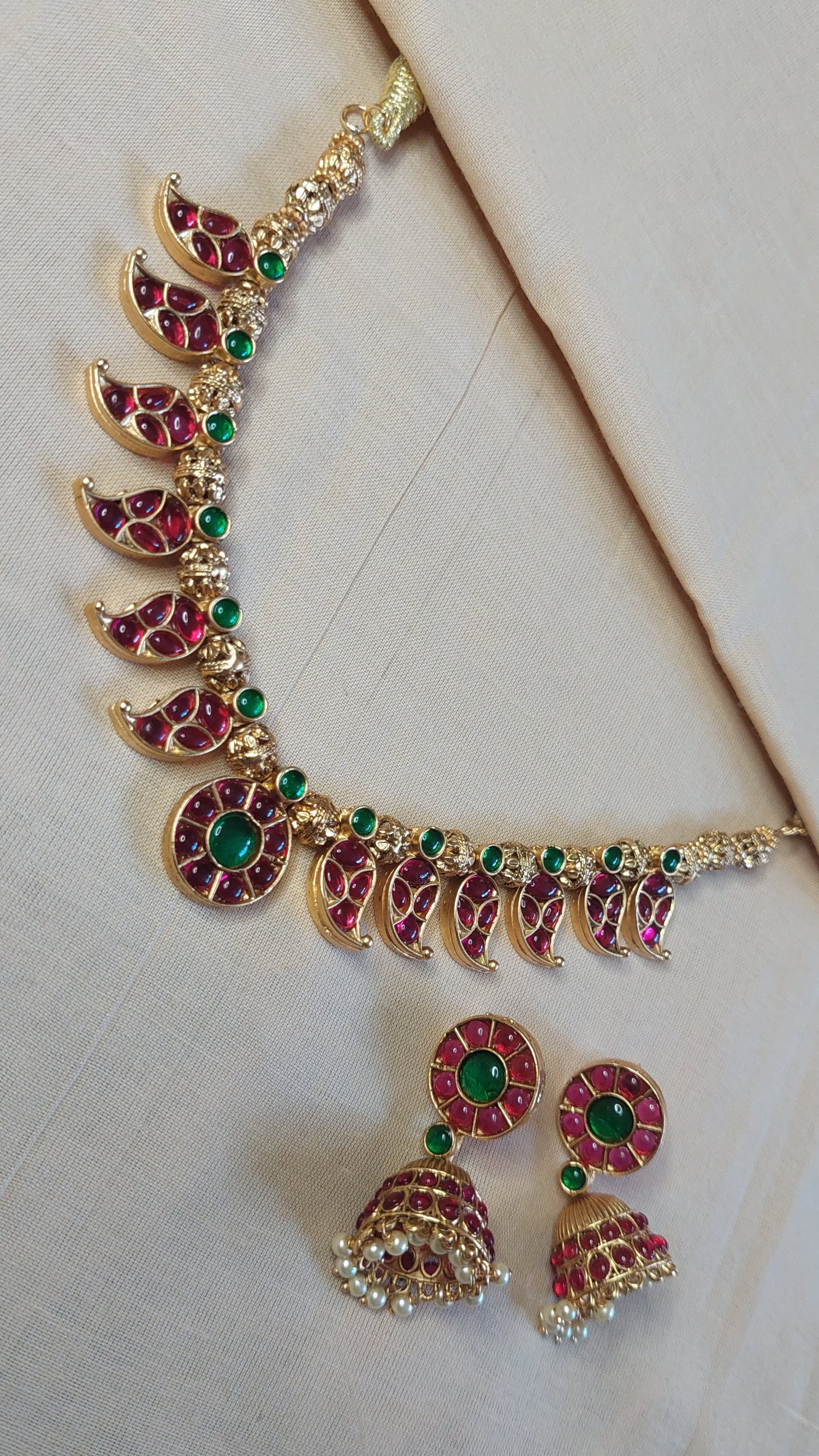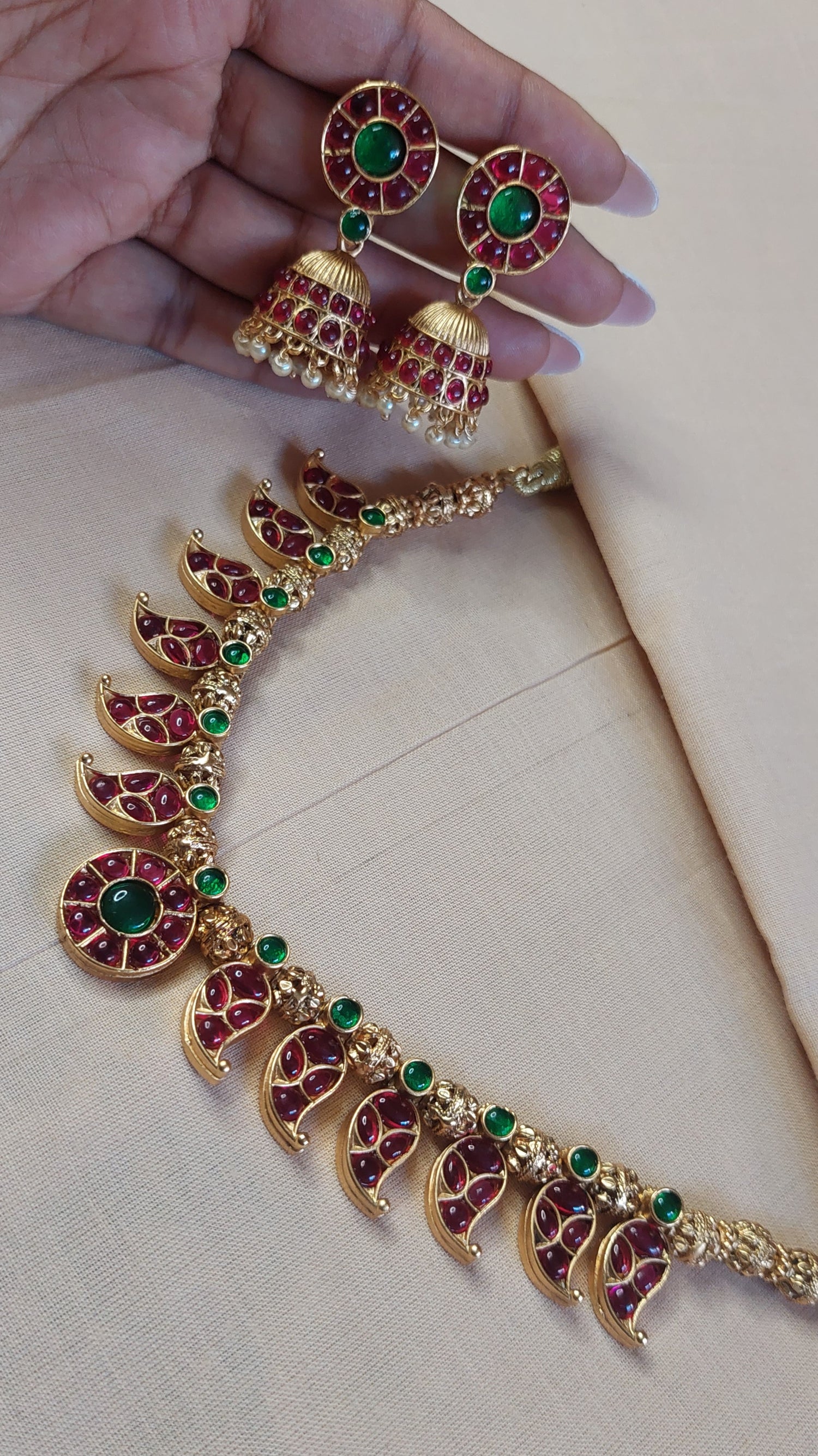 Antique gold short necklace inspired by mangos. Comes with matching jumkha style earrings.