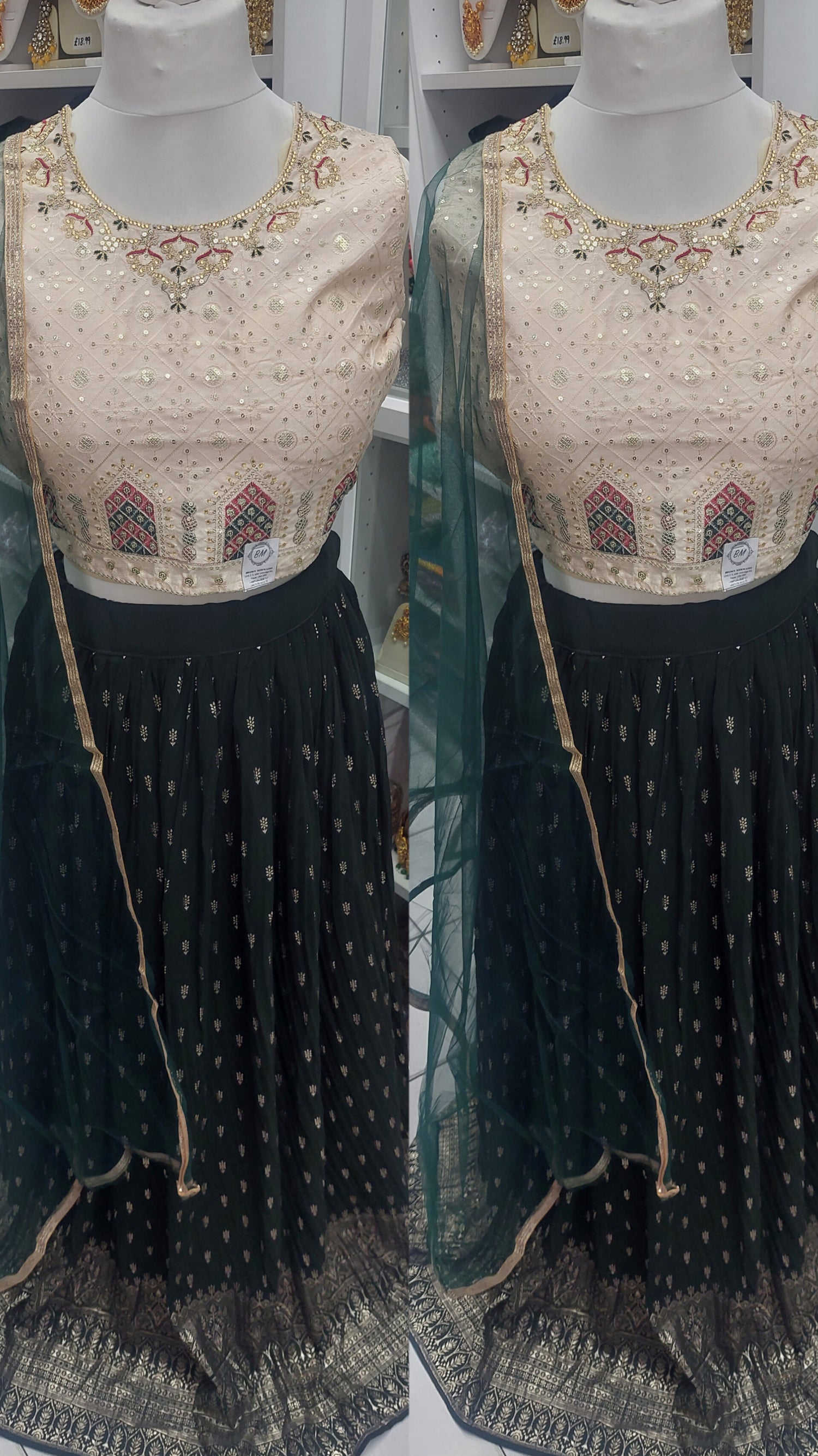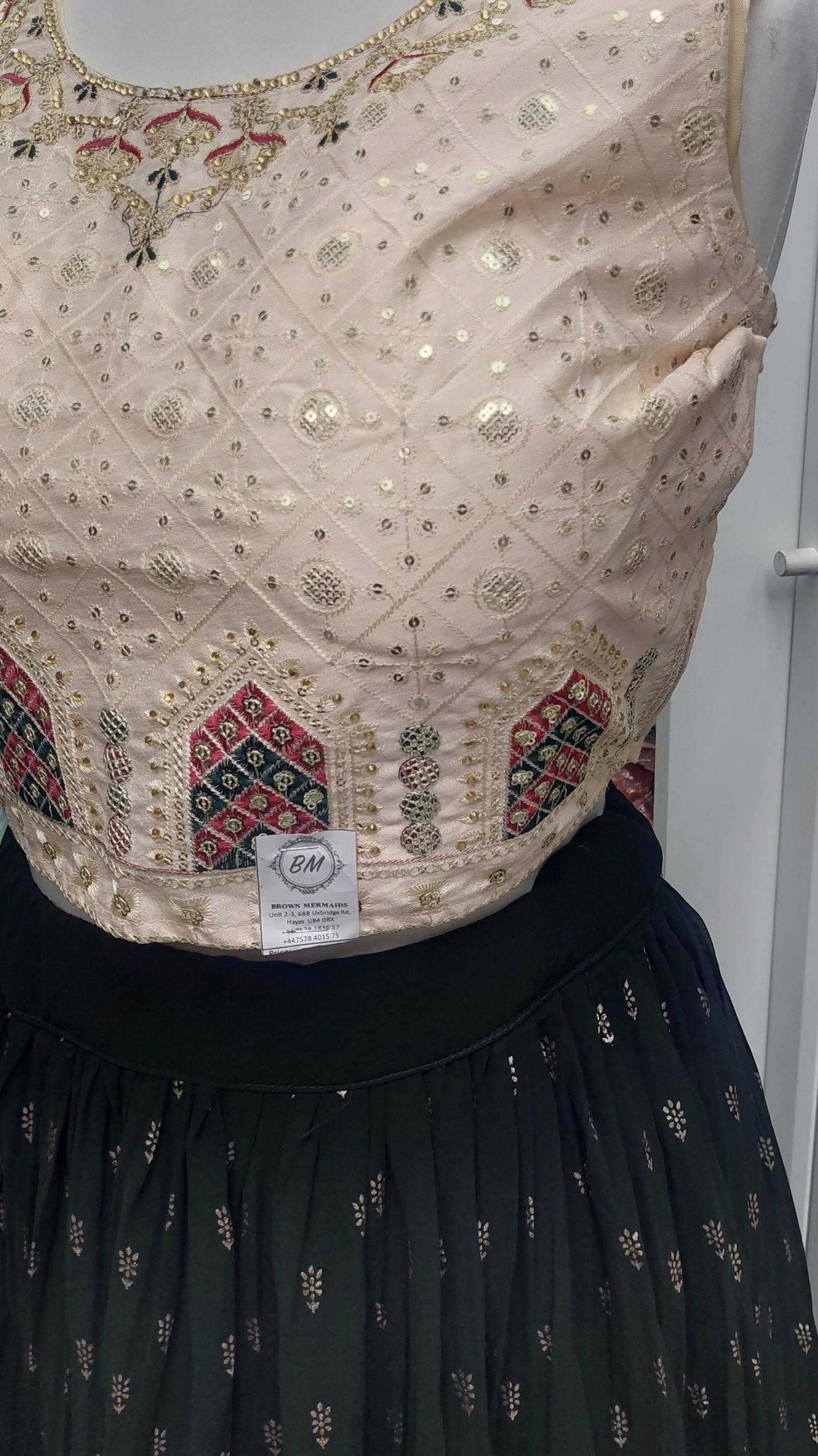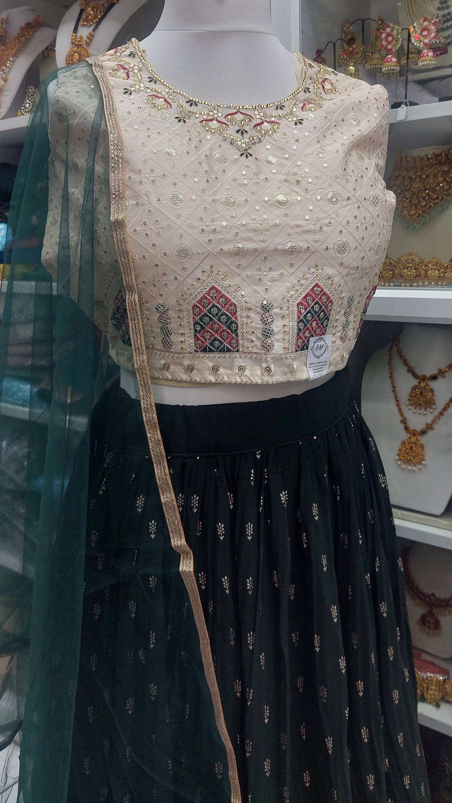 Ready made lengha with skirt, blouse and dupatta.
