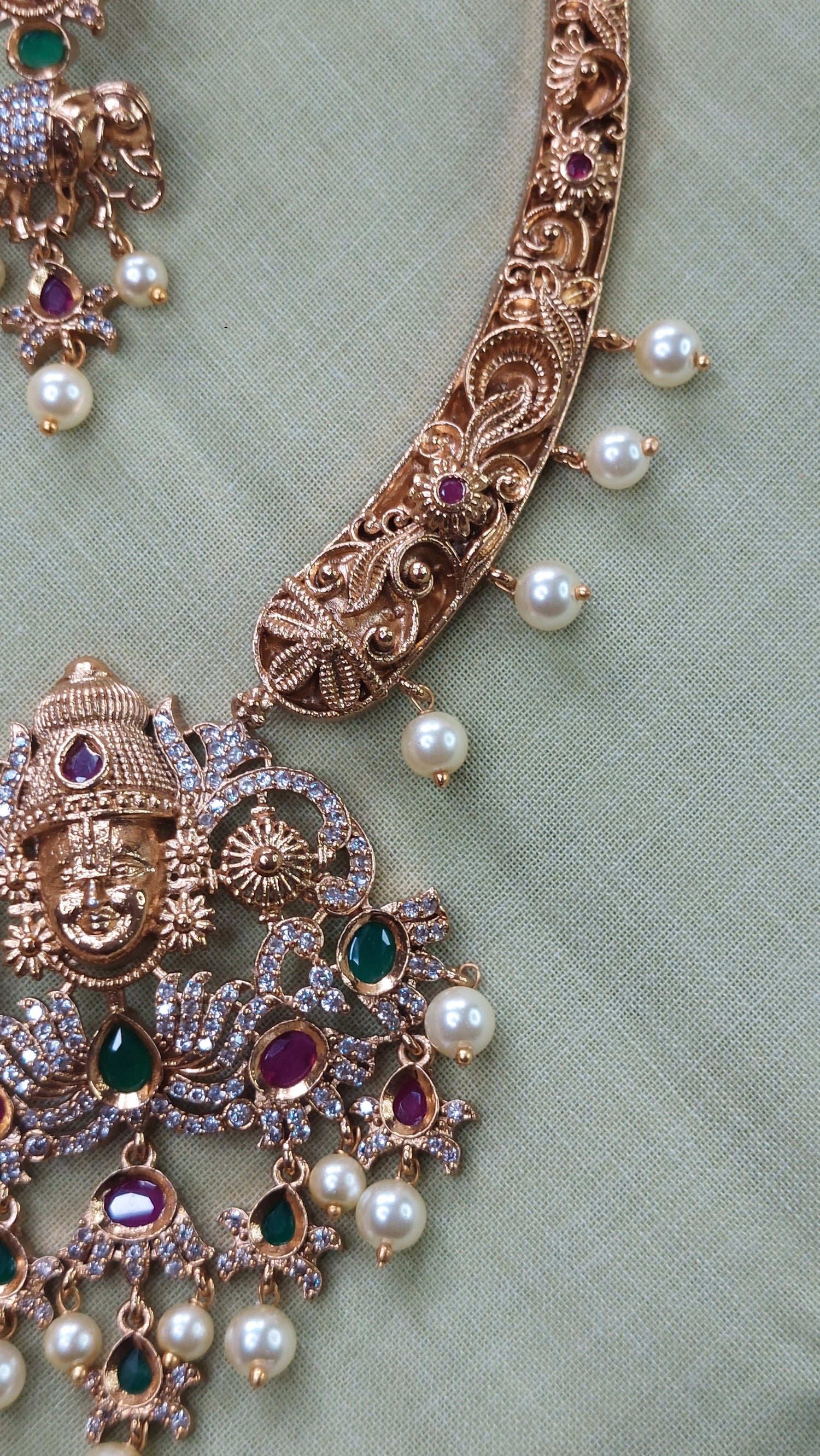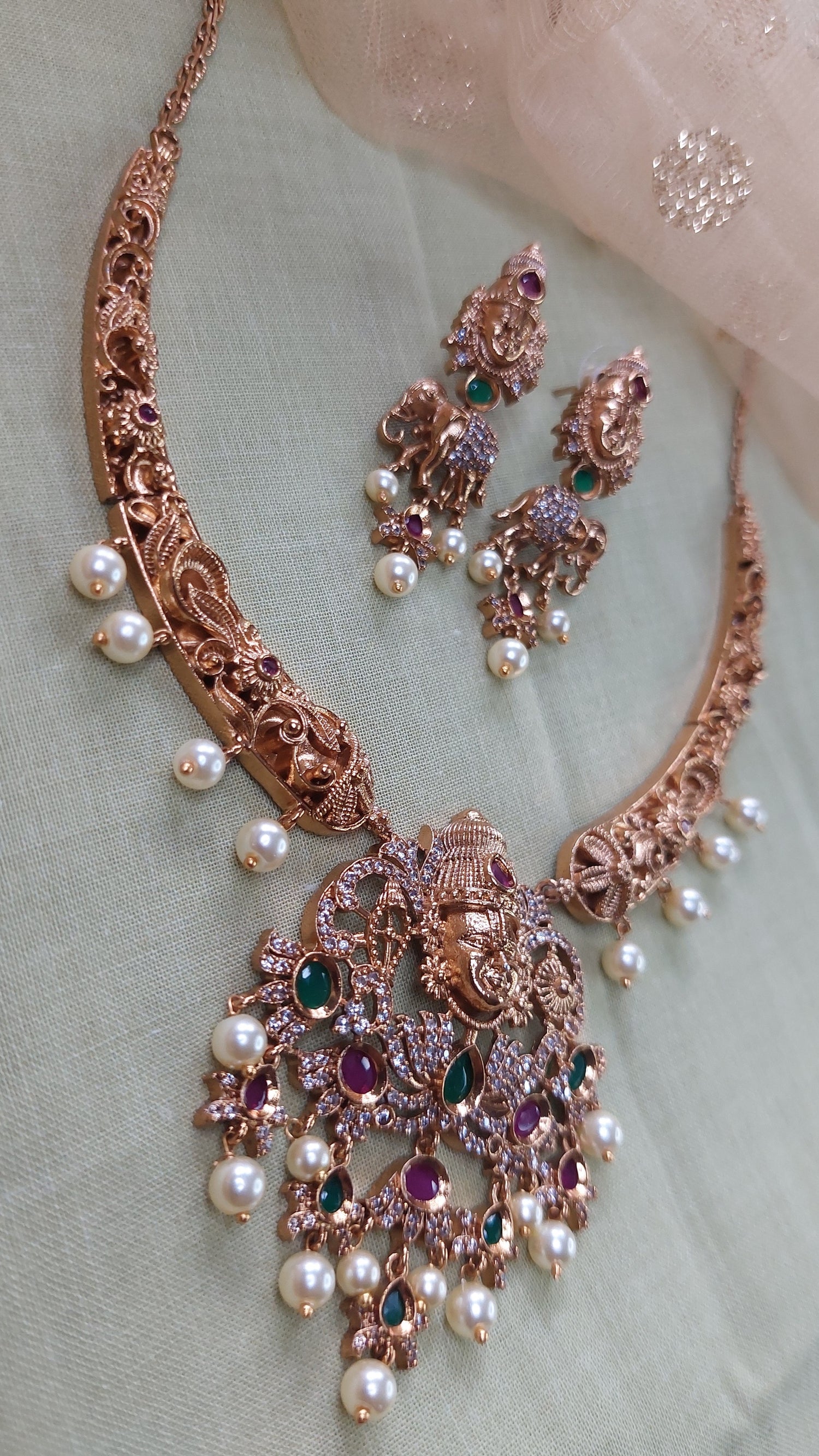 Antique gold temple necklace with matching earrings.
